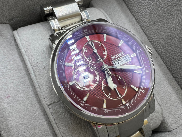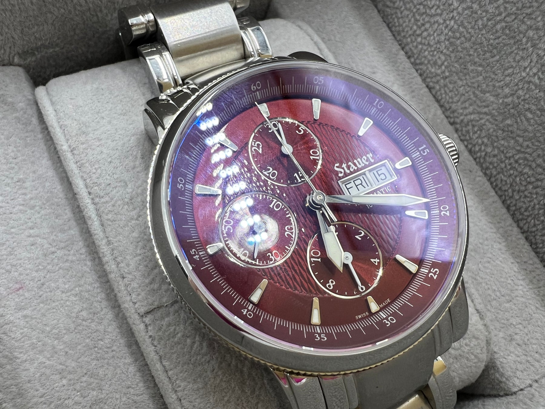 Elevate your style with this stunning Stauer wristwatch. Crafted with a sapphire crystal and case, this timepiece exudes elegance and sophistication. Perfect for formal occasions, it's a must-have for any stylish man's accessory collection. The watch features a durable construction and offers reliable performance. With its sleek design and impressive features, this Stauer wristwatch is a true masterpiece.