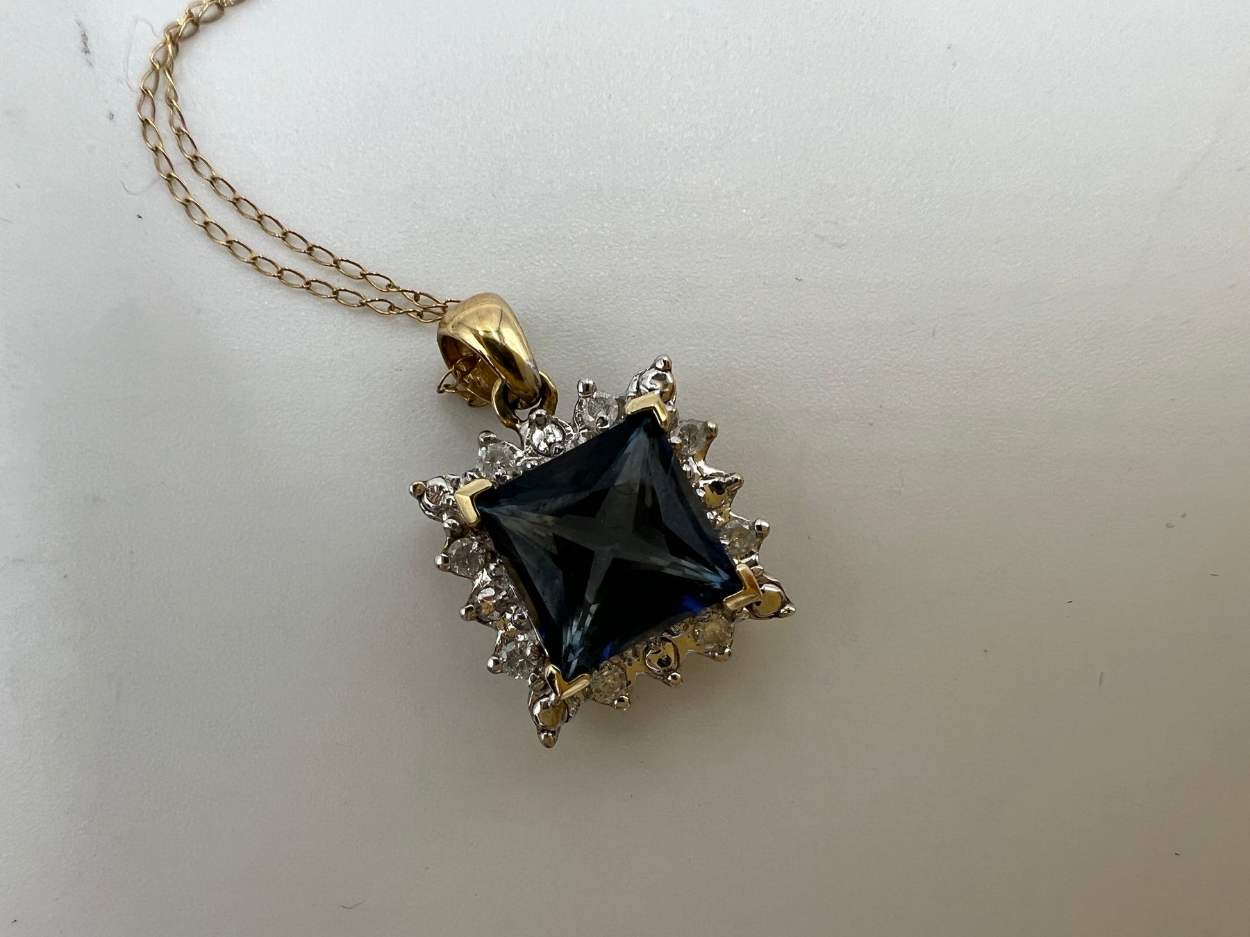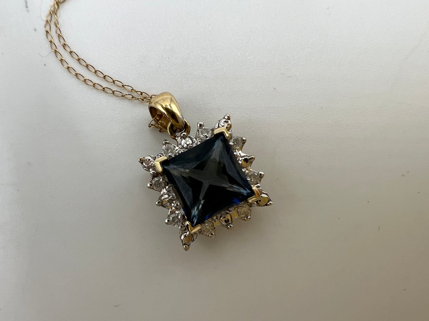 PLEASE READ ENTIRE DESCRIPTION BEFORE PURCHASING Pre-owned item. Good condition. Please see pictures for details. Sold as is, as seen on pictures. Elevate your jewelry collection with this exquisite 10kt yellow gold link chain necklace. The delicate design showcases a stunning blue main stone and intricate glass diamond detailing. The necklace boasts a timeless beauty and is the perfect accessory for any occasion. Crafted with high-quality materials, this chain is guaranteed to turn heads and make a statement. Specifics: 10kt yellow gold 18 inch link chain Glass blue stone and small diamonds. ------------------------------------------------------------------------------------------------------------------------------------------------------------- Please be 100% sure of your purchase before buying, as we do not offer refunds. We are more than happy to provide any specific pictures, or answer any questions you have regarding our items. ALL INCLUDED ITEMS ARE IN PICTURES, SOLD AS IS AS SEEN ON PICTURES Do not assume anything is included that is not shown in pictures. We claim no responsibility for possible inaccuracies in Manufacturers description. Shipping & Returns Please allow adequate time for your item to arrive before contacting us Domestic •We ship via First Class Mail USPS with signature RETURN POLICY We DO NOT refund for "buyer's remorse". We do not accept returns. If a buyer returns an item, the buyer will pay all return shipping fees. A 10% restocking fee will be subtracted from the amount of the item. No shipping fees will be returned. All items must be returned exactly as shipped. If an item is damaged during shipping, the buyer is responsible for contacting the shipping company to collect any monies owed. All of our items are insured upon shipping. If an item is defective we must be notified within 7 days to try to resolve the problem Any item listed "as is, for parts or repair may not be returned. These items may be damaged. These items will not be refunded. |
