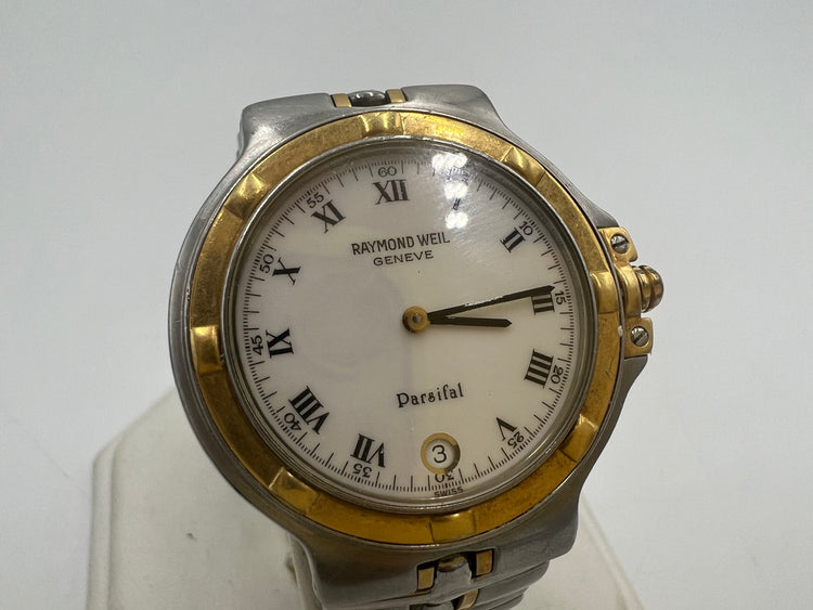 This stunning Raymond Weil Parsifal wrist watch is the perfect addition to any collection. Crafted with luxury in mind, the two-toned design seamlessly blends casual and dressy styles. With its versatile look, it's perfect for any occasion. The model is highly sought-after and is a great choice for men who love high-end watches.