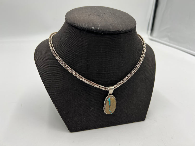 t949 Unique Navajo Sterling Silver Turquoise Pendant and Necklace