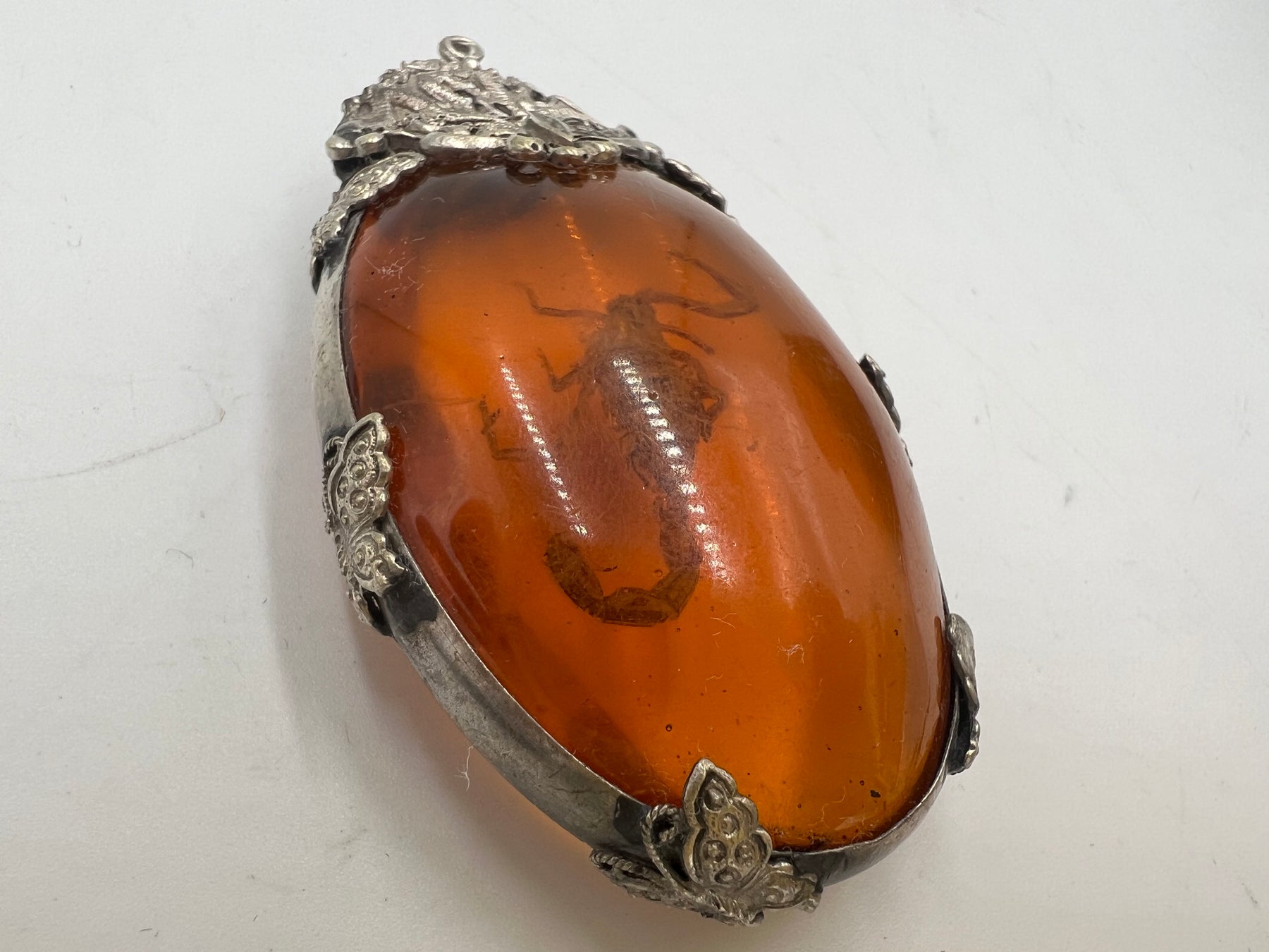There are two pendants listed. One has a scorpion within the amber, the other does not.