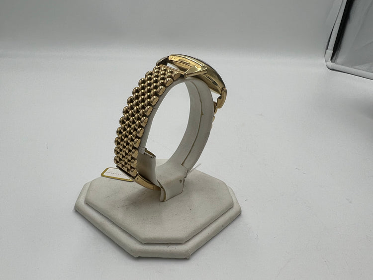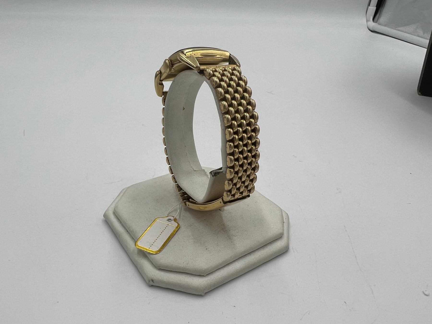 24mm case/dial size. 14kt gold filled case. 15mm band width. 40.7 grams.