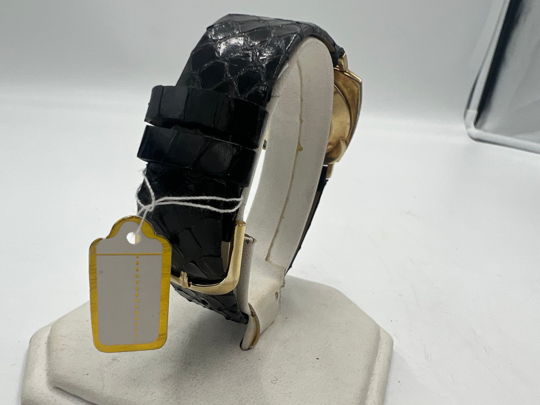 This Hamilton Wristwatch is a perfect blend of style and functionality. With a quartz movement, you can be sure of reliable timekeeping. The champagne dial of this watch complements the classic and formal look, making it an ideal choice for both dressy and casual occasions. Crafted from leather, the band material adds to the comfort and durability of this wristwatch. The analog display of this Hamilton Electric Taurus model ensures easy readability. Upgrade your style game with this watch, perfect for any occasion.