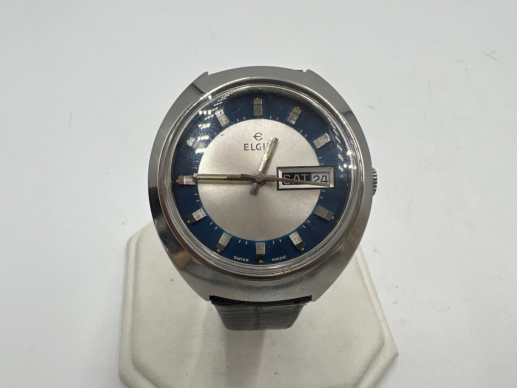 For sale: (1) u151 Elgin Stainless Steel Blue Dial Automatic Day Date Watch