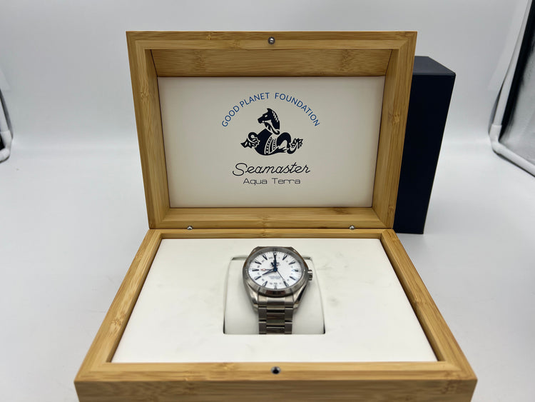 This Omega Aqua Terra wristwatch is a luxurious piece that is perfect for any stylish man. The watch is part of the 2020 Good Planet Edition and features a sleek design that exudes elegance. The watch is made by the renowned brand Omega and is perfect for those who are looking for a high-quality timepiece. The wristwatch is designed for men and features a number of different aspects that make it a great choice for any fashion-conscious individual. Features include: titanium on titanium, master chronometer certified, grade 5 titanium, sapphire crystal on front and back, 60 hour power reserve.