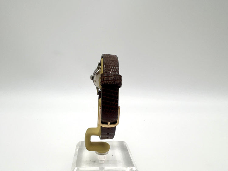 Case/dial diameter is 20mm and the band width is 10mm. The length is 7.50 inches and it weighs 15.4 grams. Genuine lizard band. Stainless steel case.