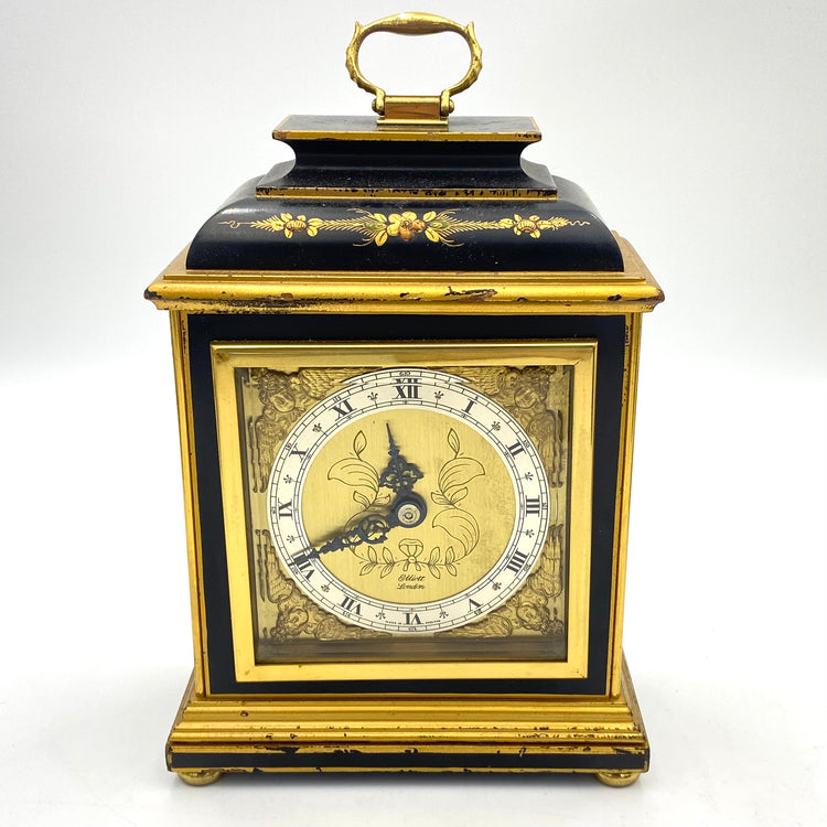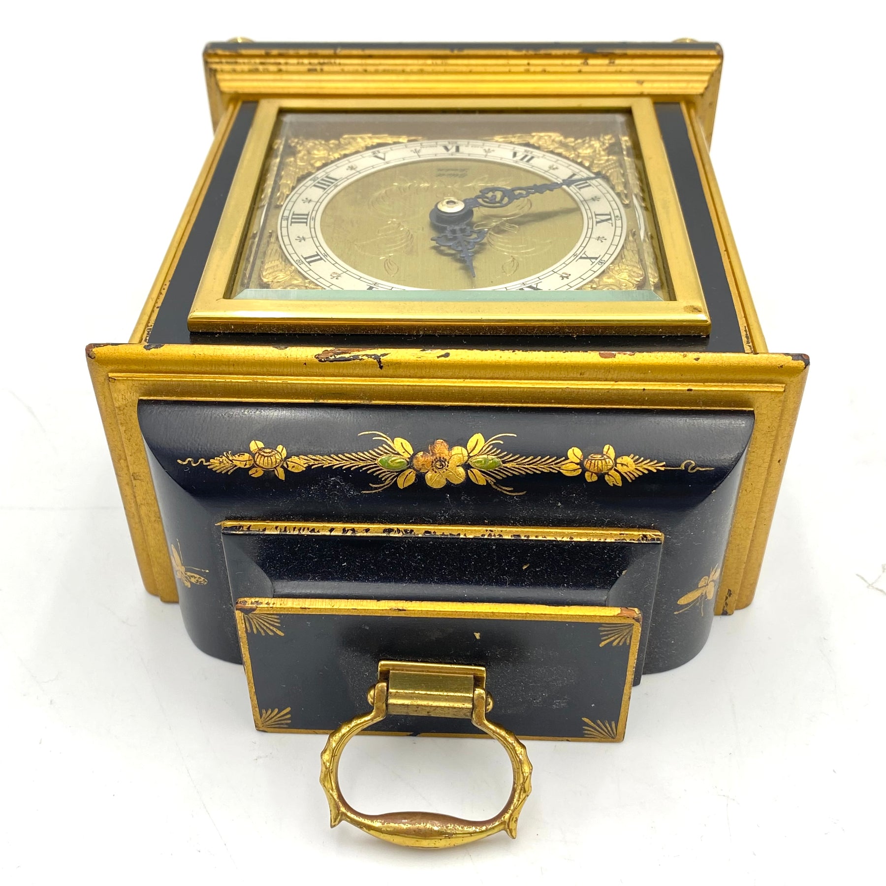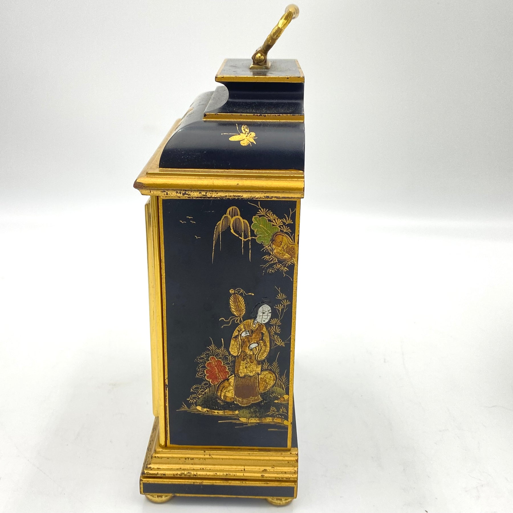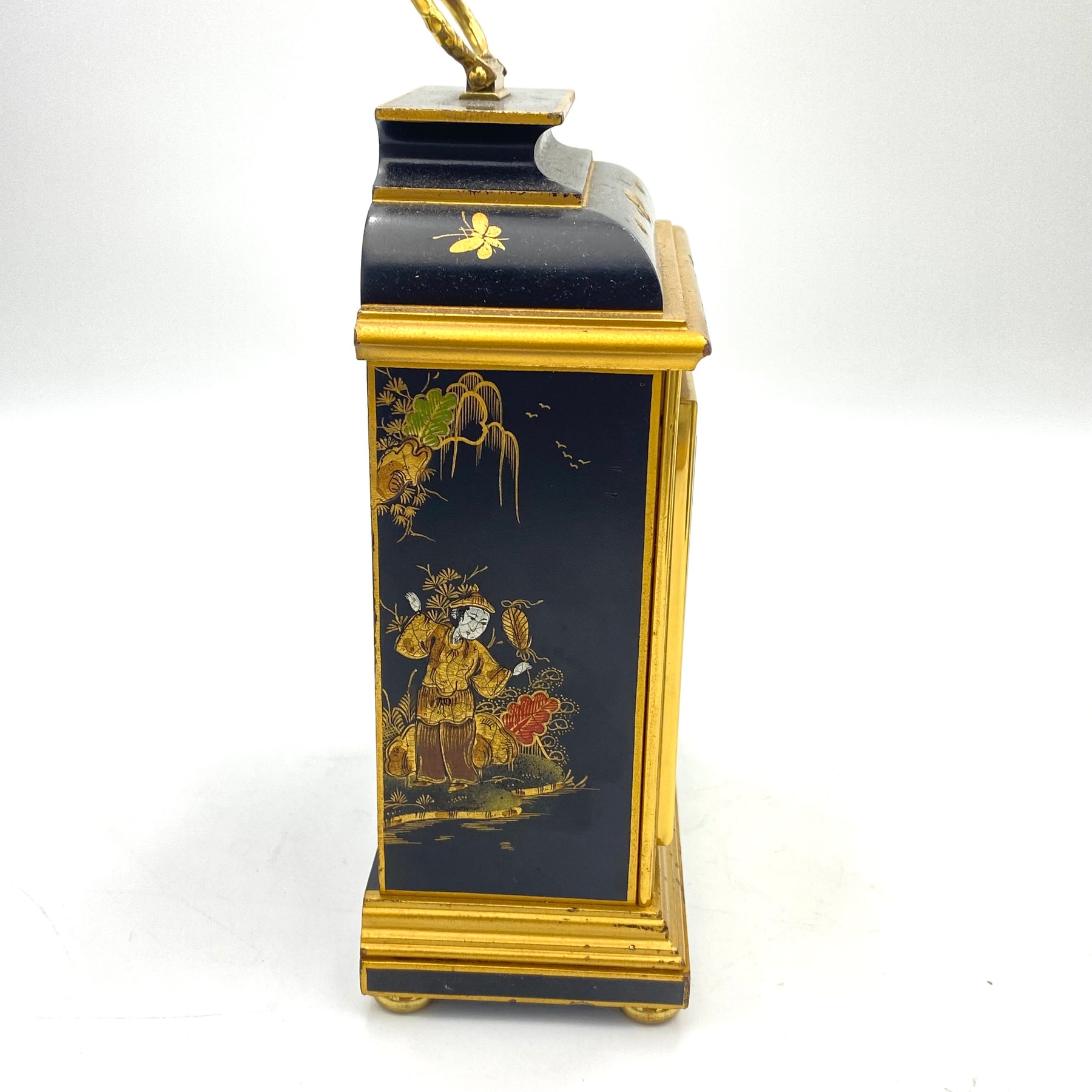 u424 Elliott London Chinoiserie Table Clock Cinnabar Hand Paint Japanese Motif