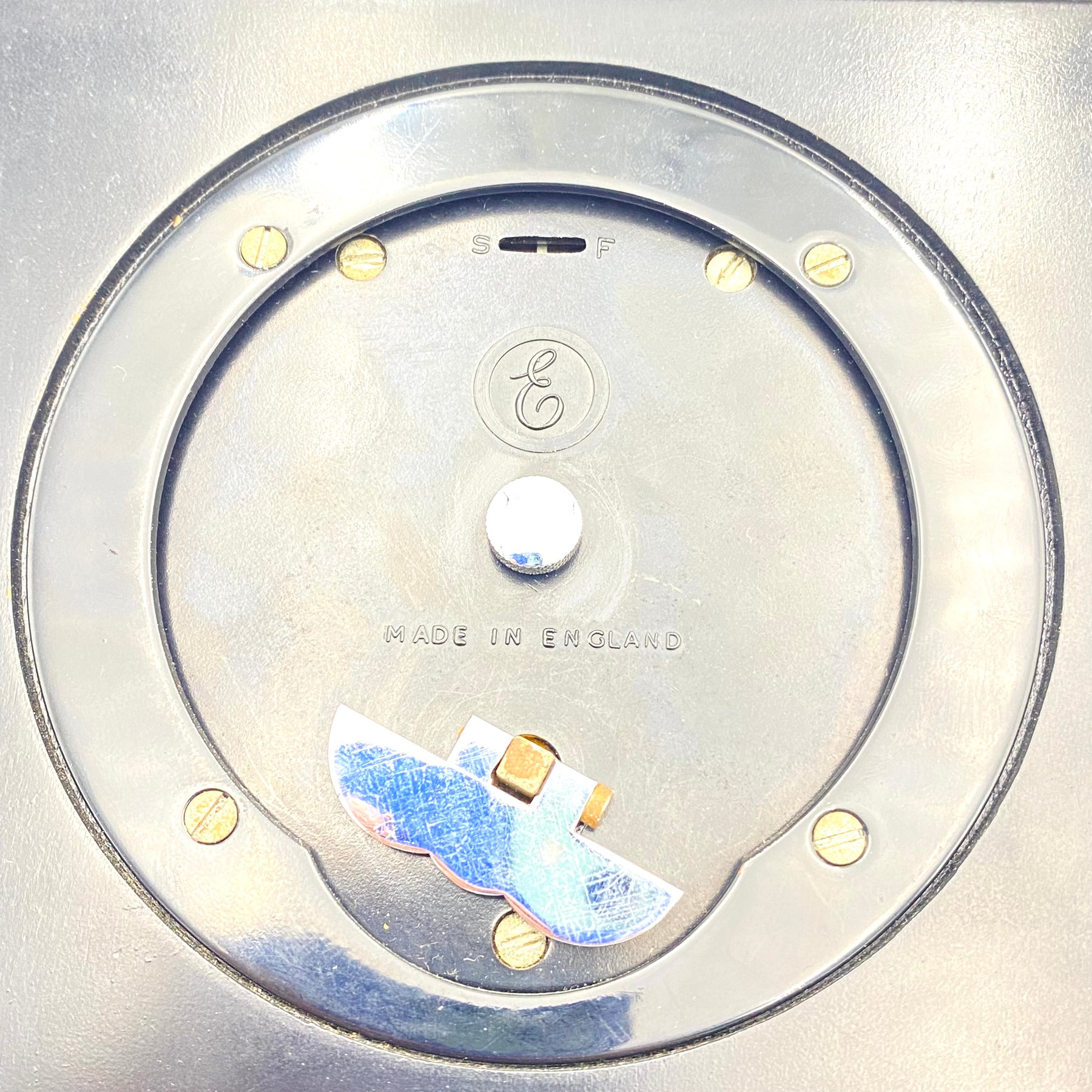 Pre-owned vintage item. Please see pictures for details. Some discoloration. Sold as is, as seen on pictures, no returns on vintage/antique items. We do not alter/polish antique items (unless requested by buyer) and try to keep items as original as possible. Clock was serviced and working well.