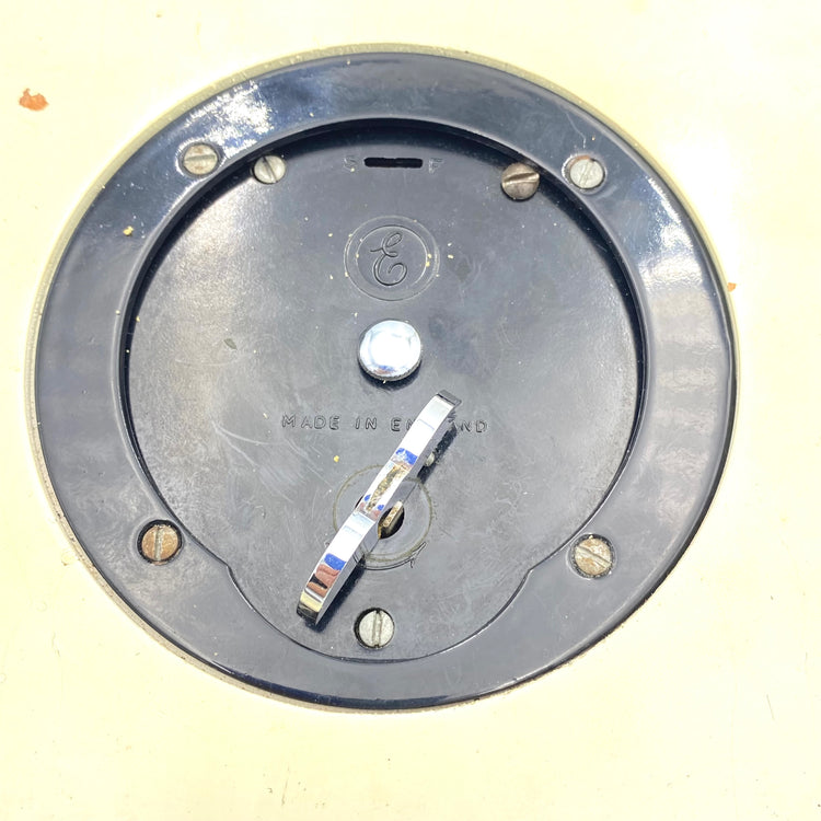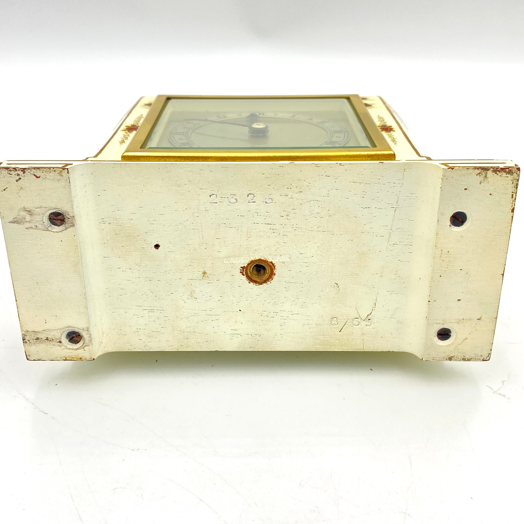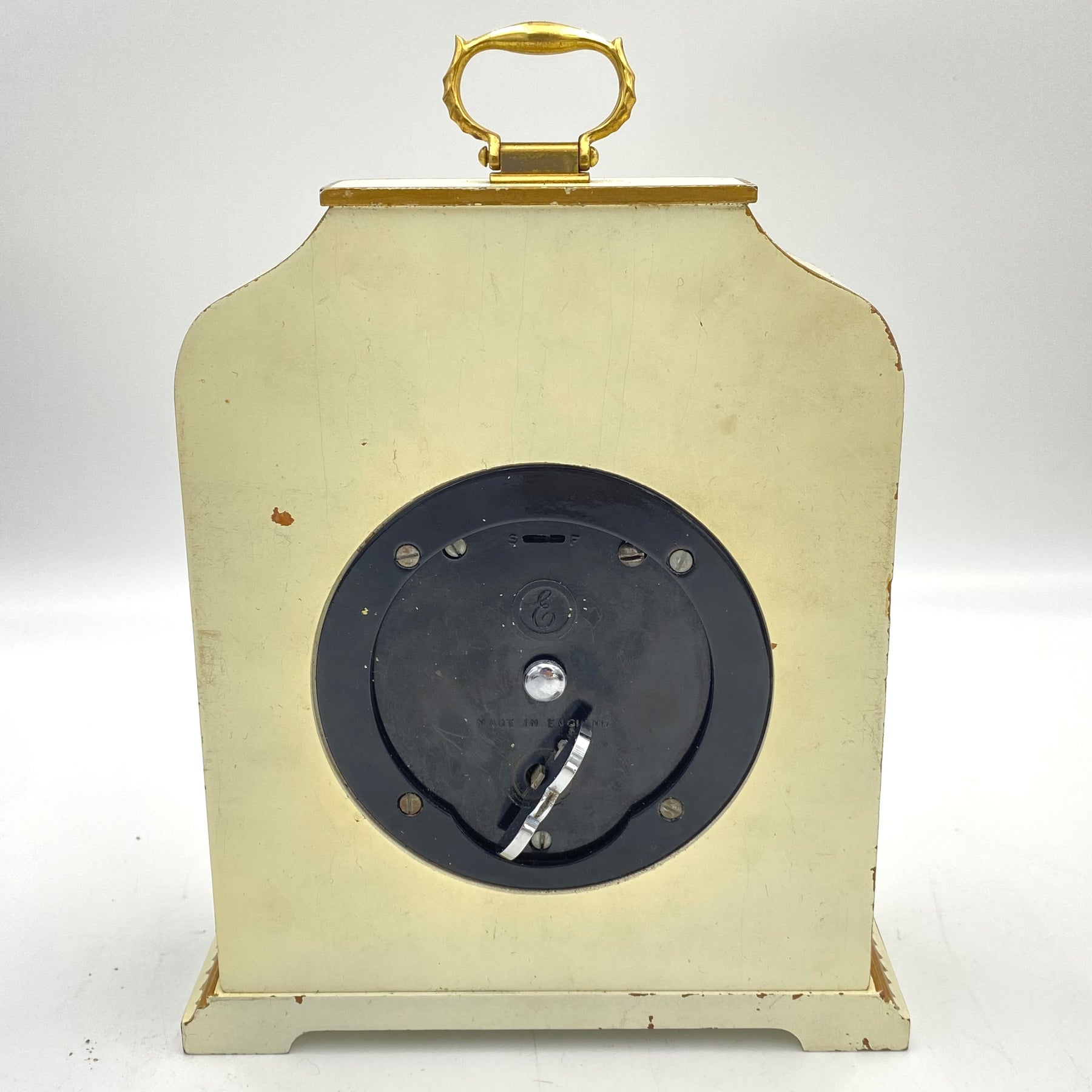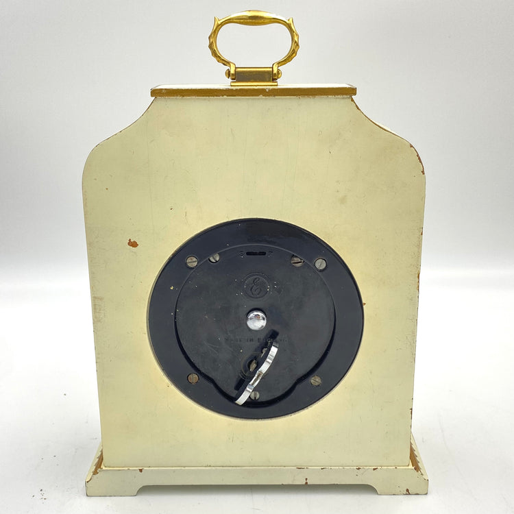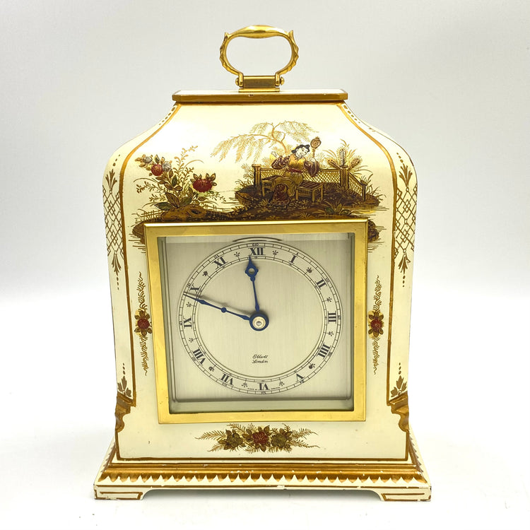 u426 Elliott London 8 Day Table Beige Clock Hand Painted Japanese Motif c.1960's