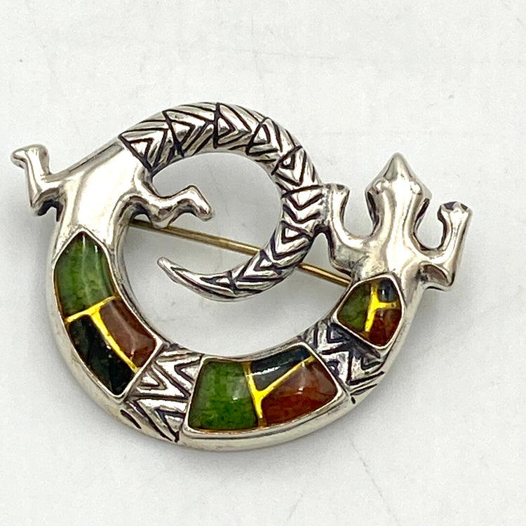 u466 Vintage Carolyn Pollack 925 Sterling Silver Enamel Salamander Brooch Pin