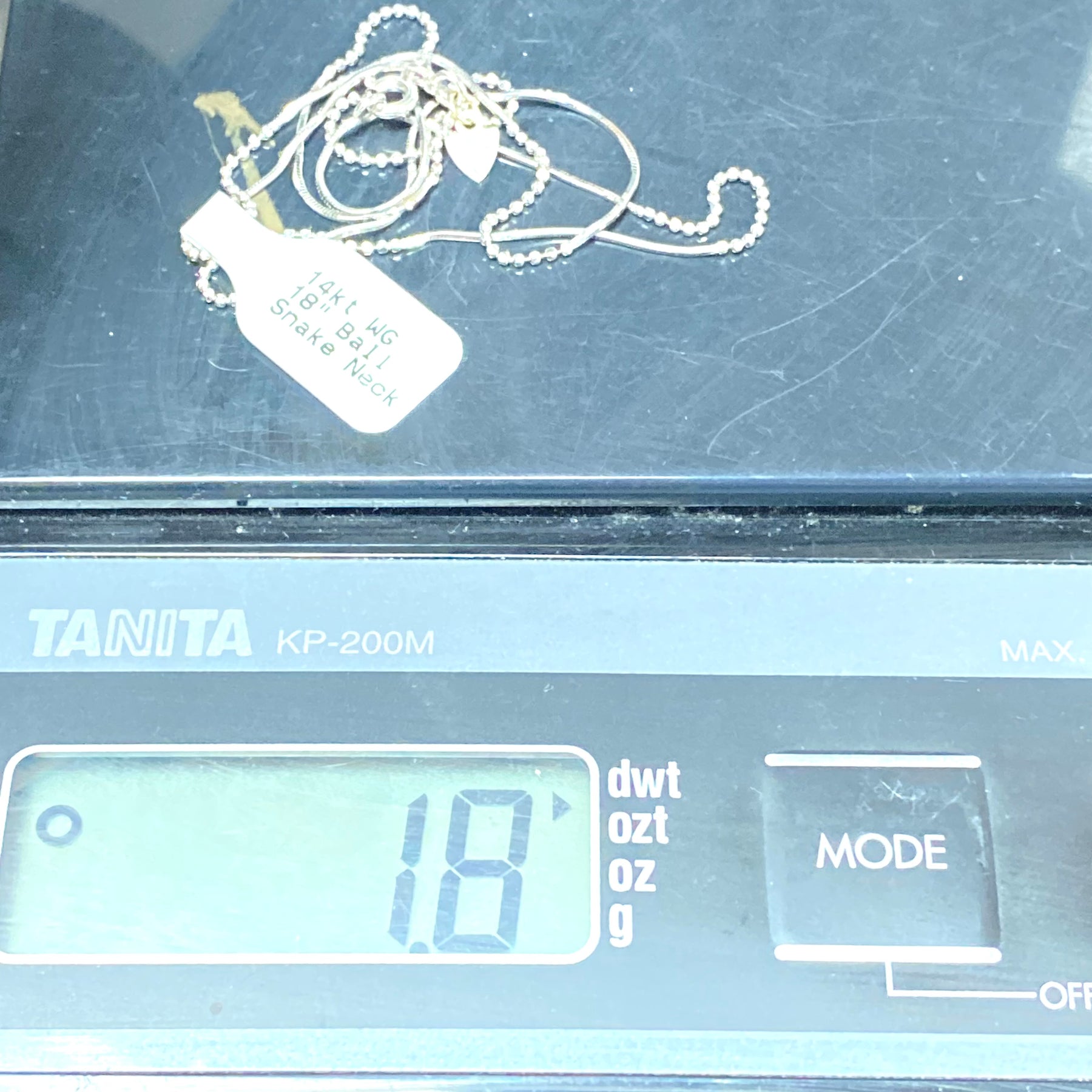 * 14K White Gold Chain Necklace. 18" long. Ball Snake Rope chain.