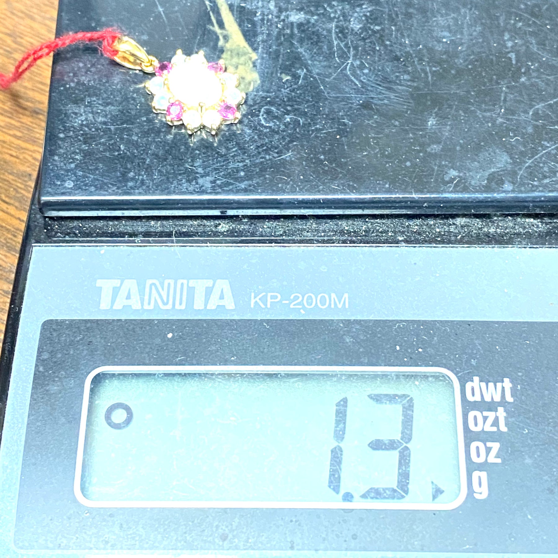 u506 Vintage 14k Yellow Gold Opal Rubellite Genuine Stones Flower Pendant Charm