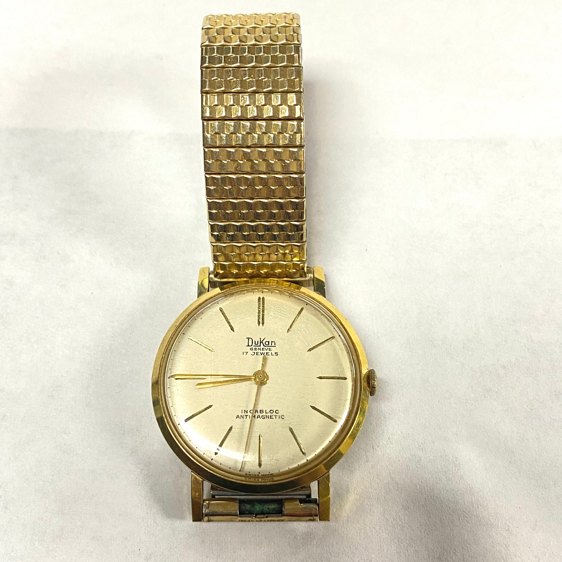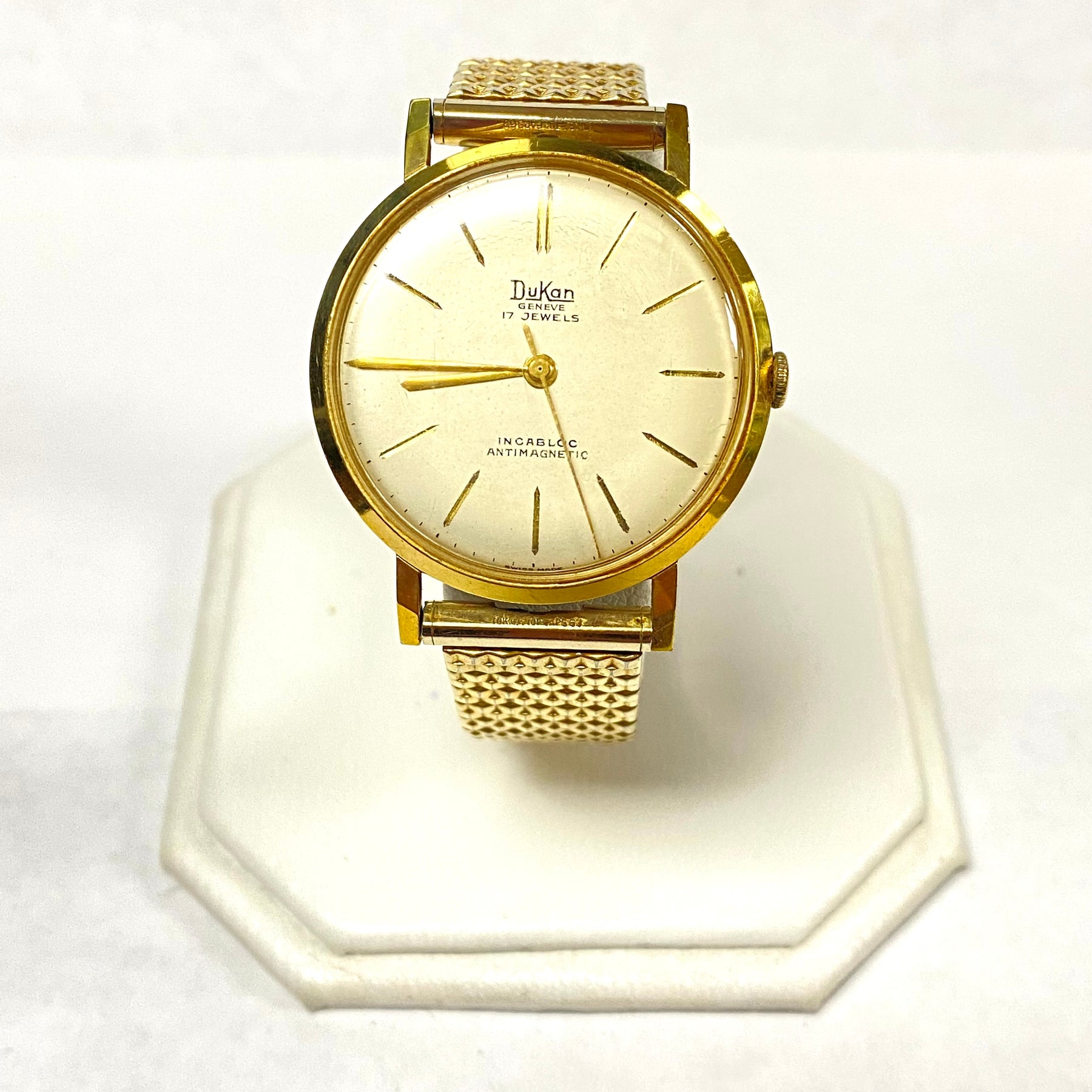 u516 Vintage DuKan Geneve Mechanical Incabloc Gold Tone Wrist Watch 1970's