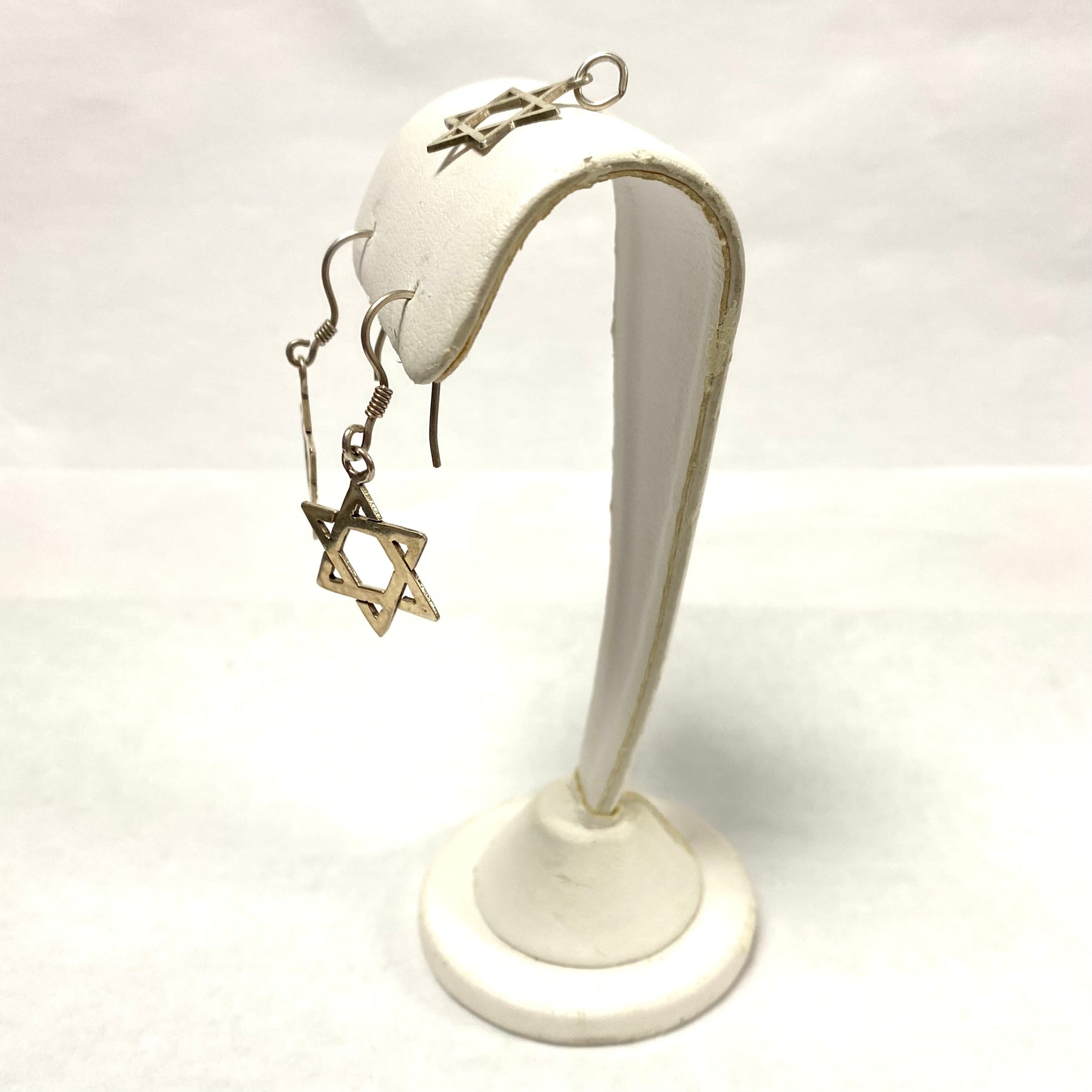 u525 Vintage Sterling Silver Star of David Dangle Earrings and Matching Pendant