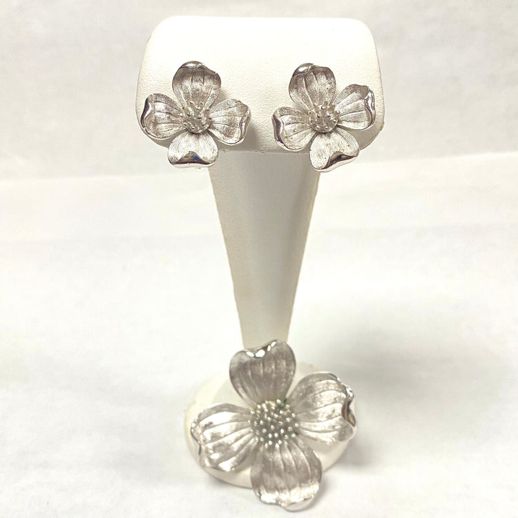 u550 Vintage Crown Trifari 3pc Set Clip Earrings and Matching Brooch Pin Dogwood