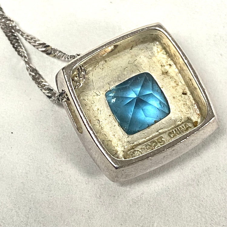 * Sterling Silver/Blue stone Detachable Pendant. 15mm x 15mm. Stone is 7mm x 7mm. Made in China.