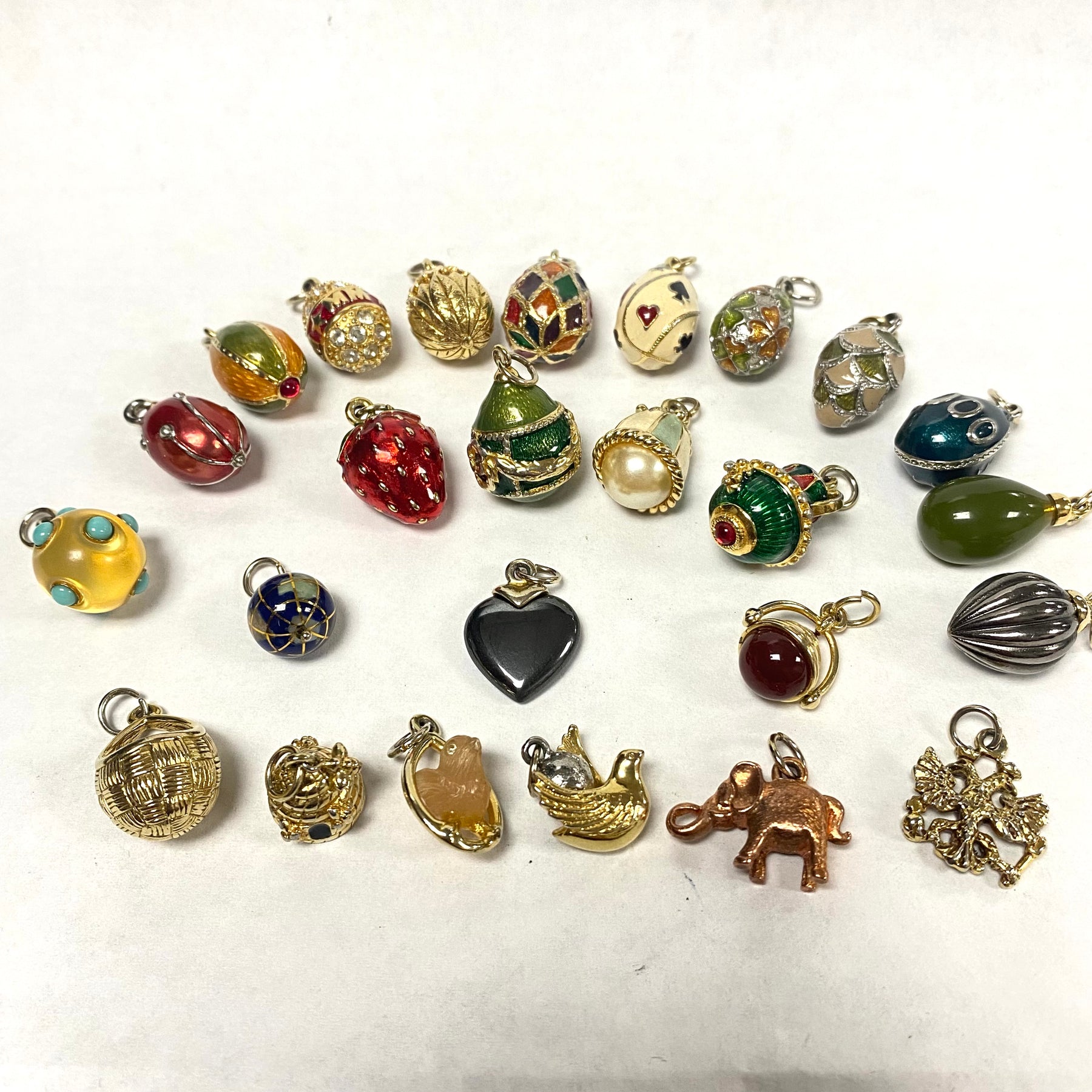 Vintage Private Collection of 25 Charms. Gold Filled & Enamel. Russian Style Faberge-like Eggs, Animals, etc.