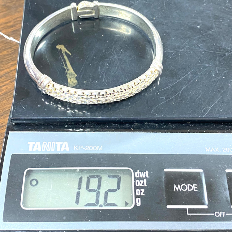 u564 Vintage 925 Sterling Silver 8" Long Cuff Snap Closure Bracelet