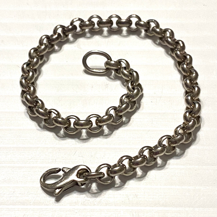 u579 Vintage 925 Sterling Silver Round Links Chain Bracelet 7"