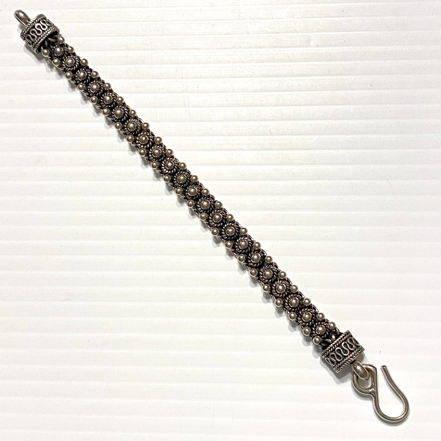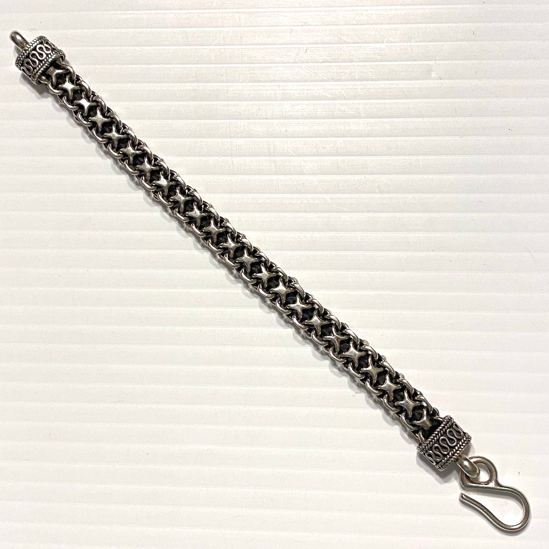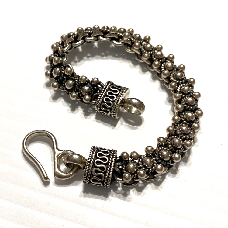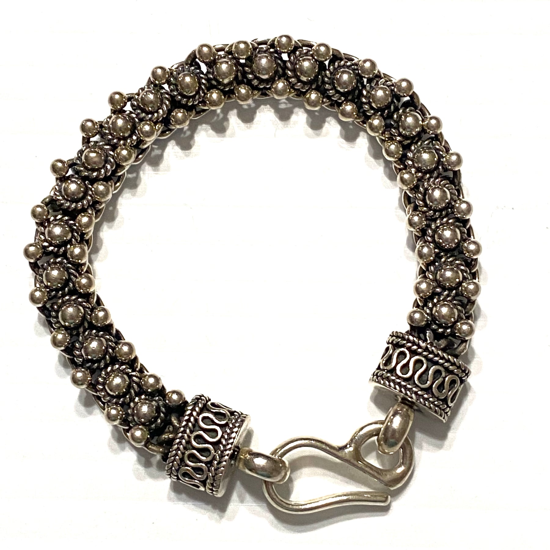 u581 Vintage 925 Sterling Silver Unique Beaded Link Chain Bracelet 7.5" Long
