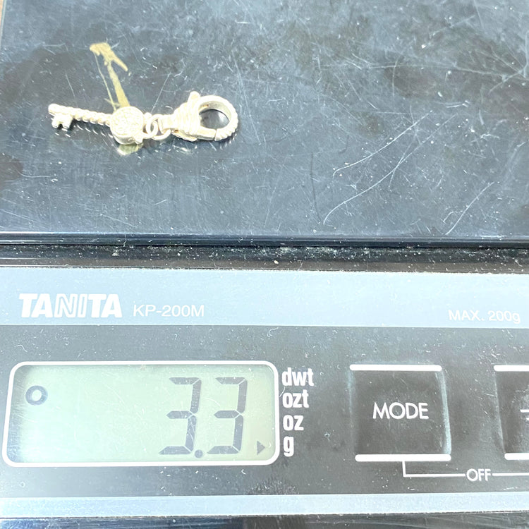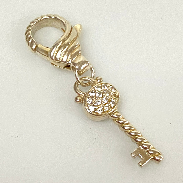 u597 Vintage Sterling Silver Key Charm Pendant Openable Bail White Stones