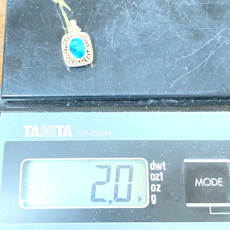 u607 Vintage Sterling Silver 925 Charm Pendant with Blue Opal Gemstone