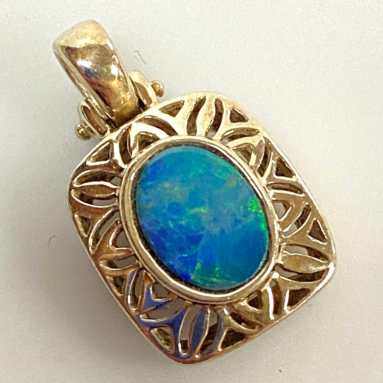 - Floral pendant with center oval Blue Opal Stone (8mm x 6mm).