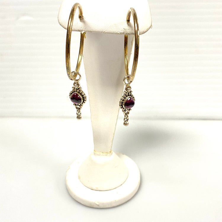 * Vintage Sterling Silver Jackets for Hoop Earrings, 30mm x 10mm with Garnet Gemstones 5mm x 6mm. Hoop opening 4mm maximum. Weight - 4.5g.