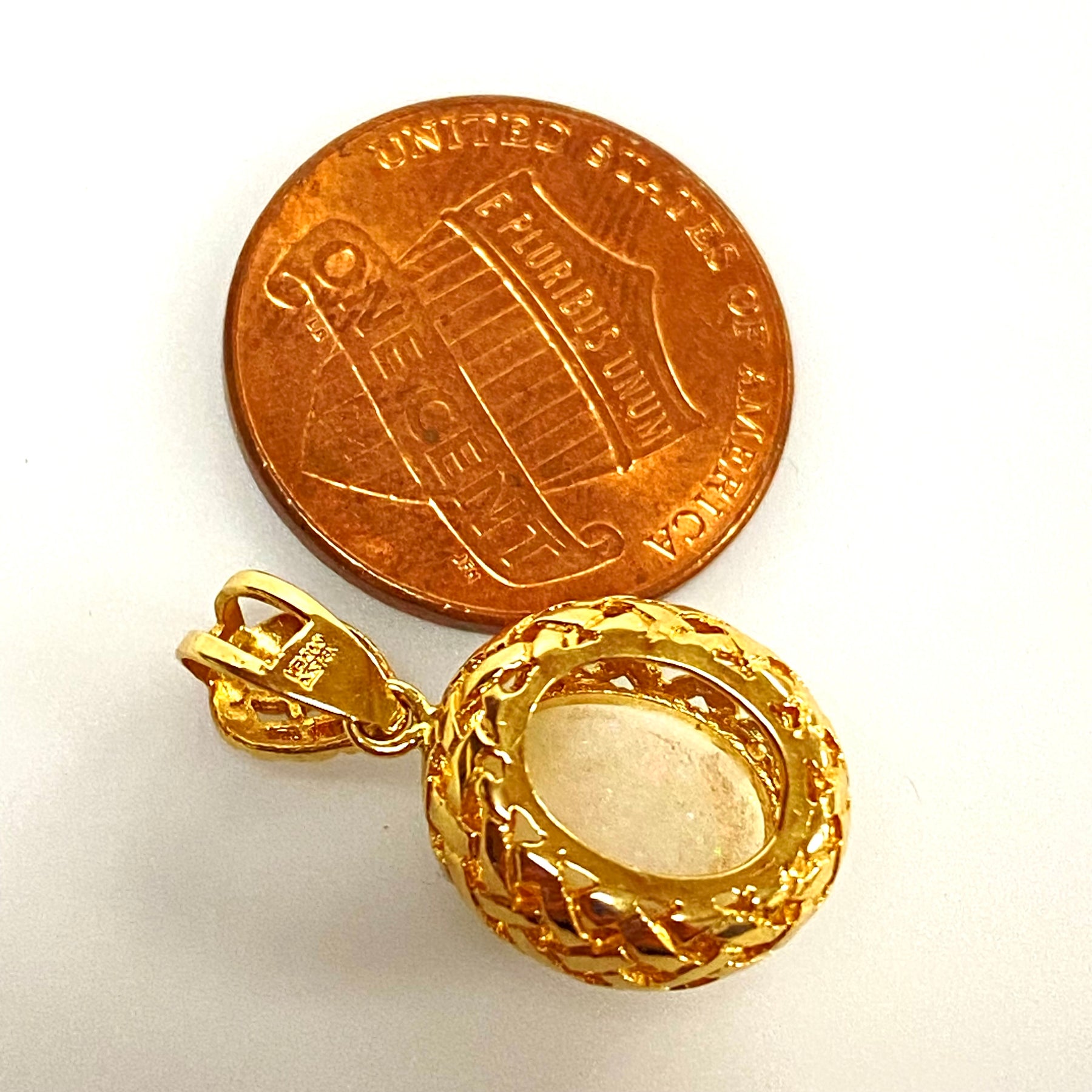 • Vintage 14K Yellow Gold Charm Pendant. White Opal Oval stone 10mm x 8mm.