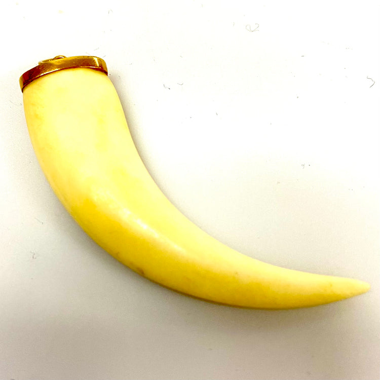 • Vintage 14k(stamped) Yellow Gold on a Tooth Charm Pendant. Light Beige natural tone.