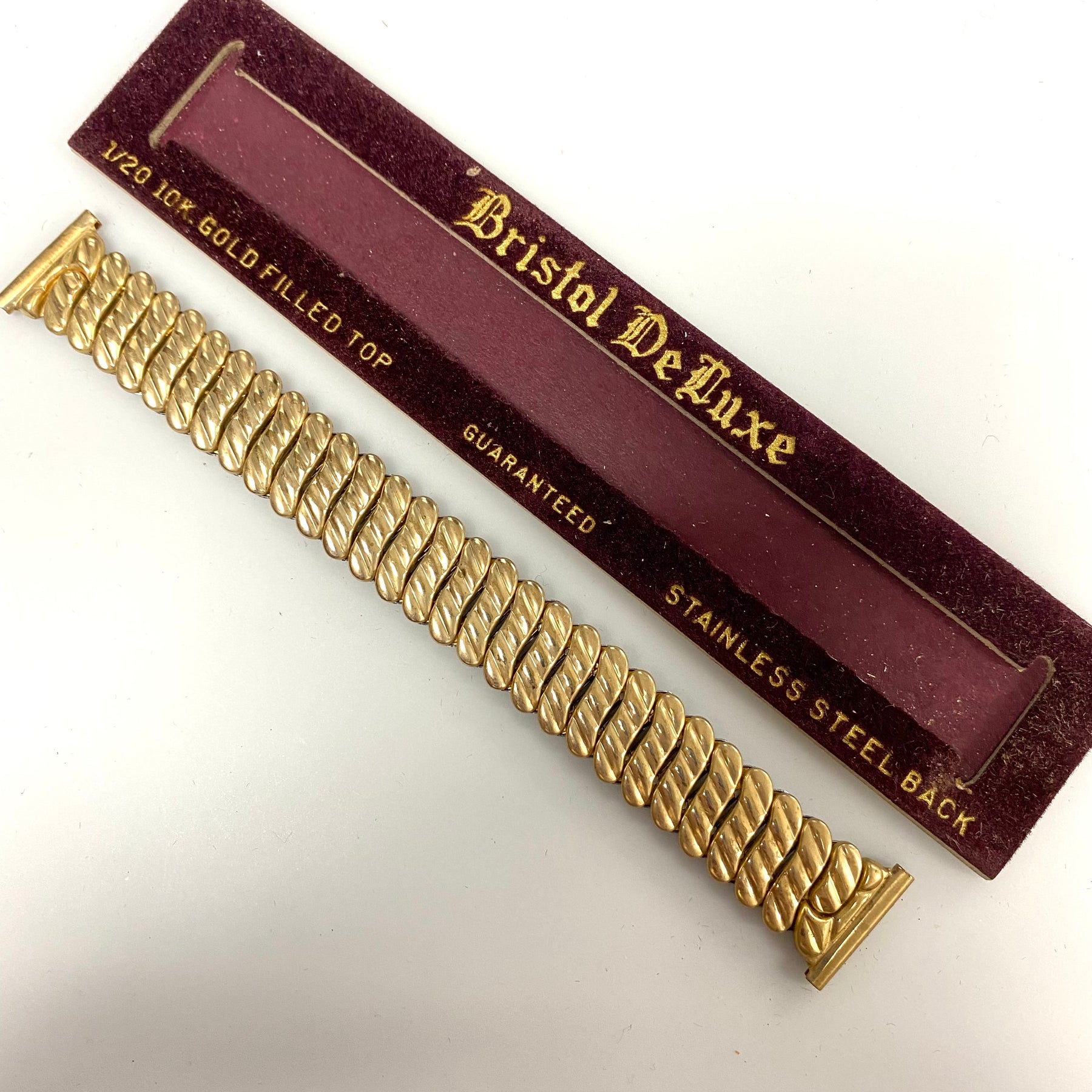 U767 Vintage 1/20 10K GF Stainless Steel One-Piece Stretchy Watch Band Bracelet