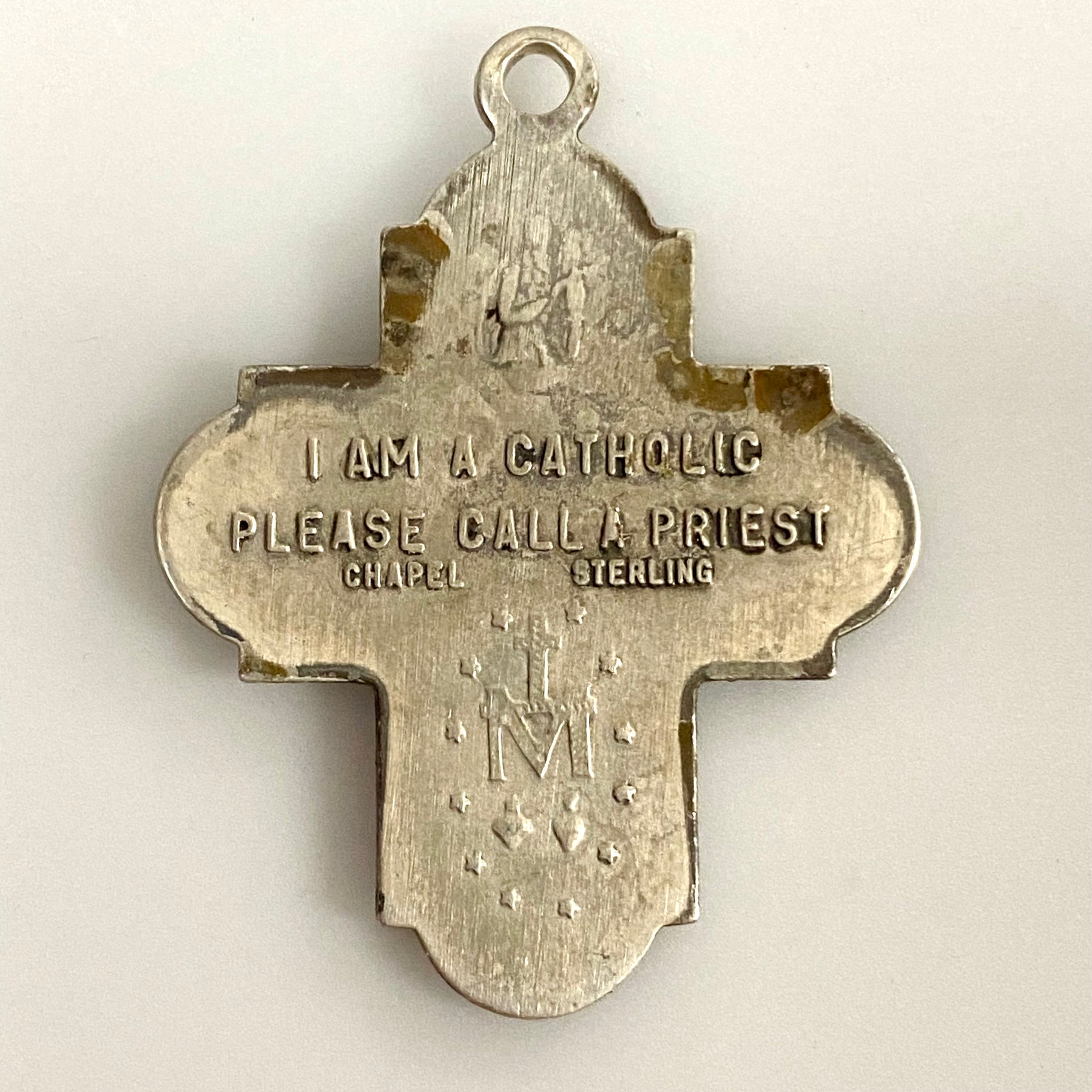 u864 Vintage Sterling Silver Jesus Cross Pendant Catholic Message
