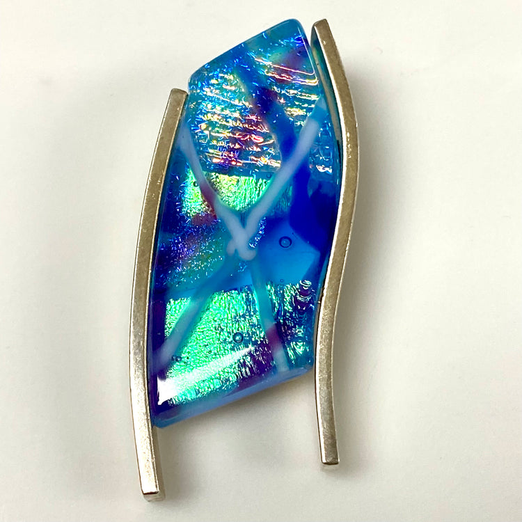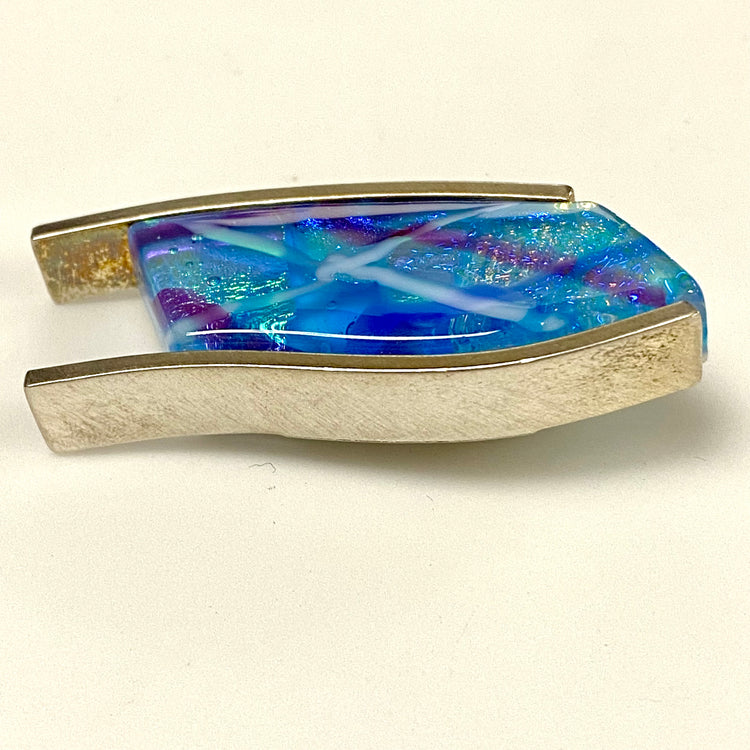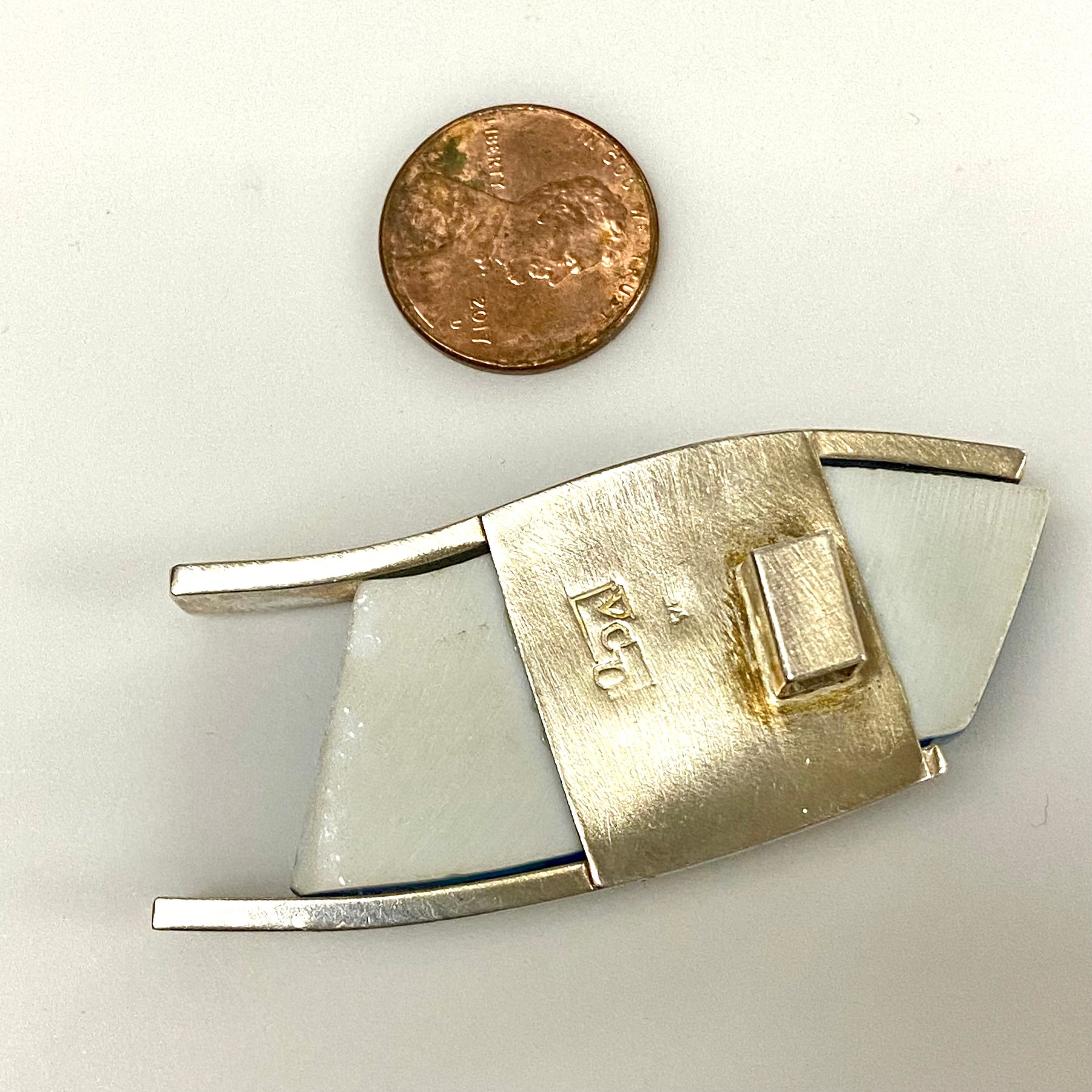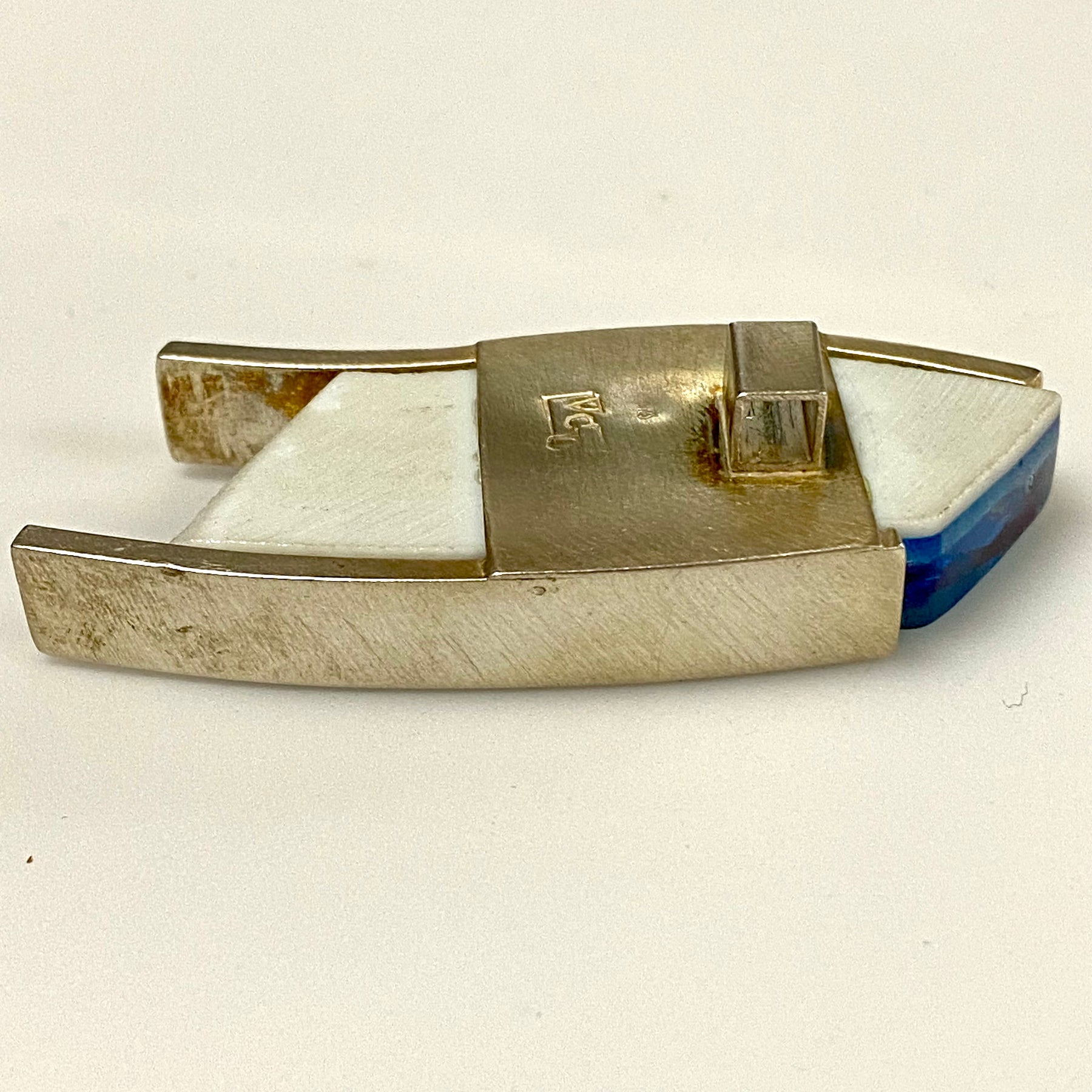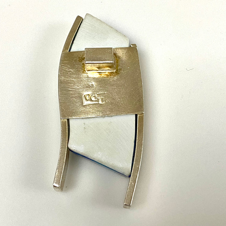 * Sterling Silver Asymetrical Charm Pendant. 58mm x 27mm x 9mm thick. Blue Synthetic Resin Decor.