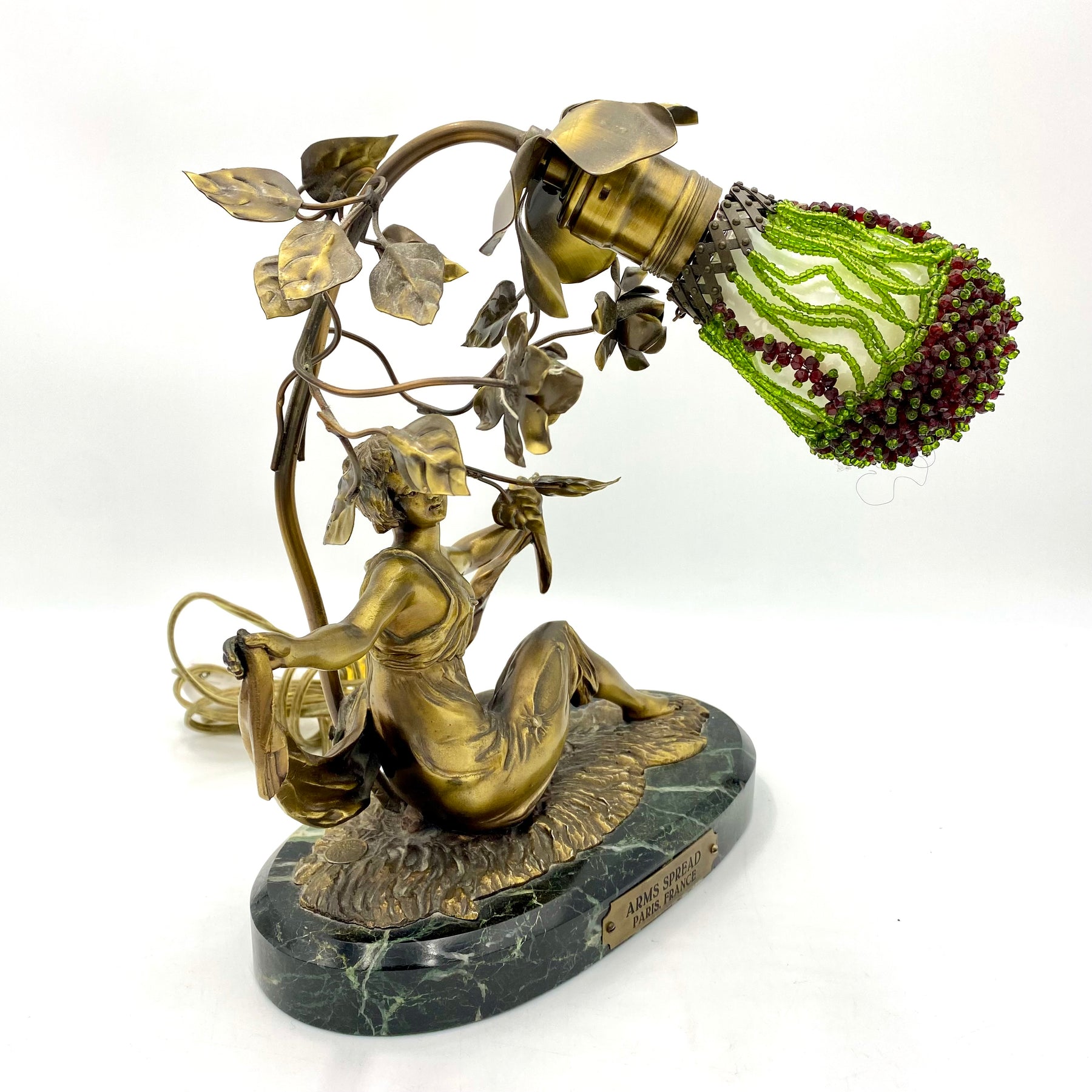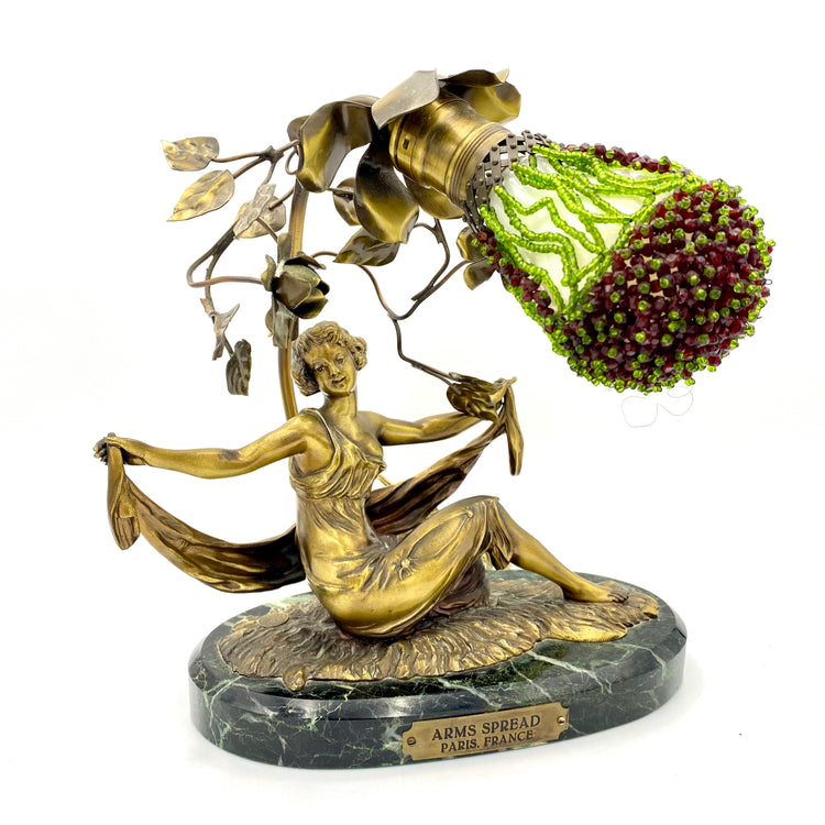 u874 Rare Antique Art Nouveau Bronzed Arms Spread Paris Femme Figurine Statue Table Lamp