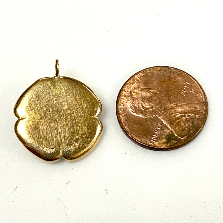 u893 Vintage 14k Yellow Gold Flower Blue Turquoise Pendant Charm