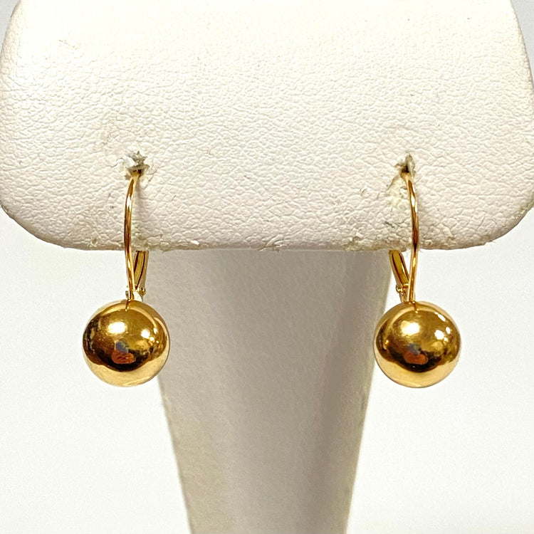 u913 Vintage Classic 14K Yellow Gold 7mm Ball Dangling Earrings