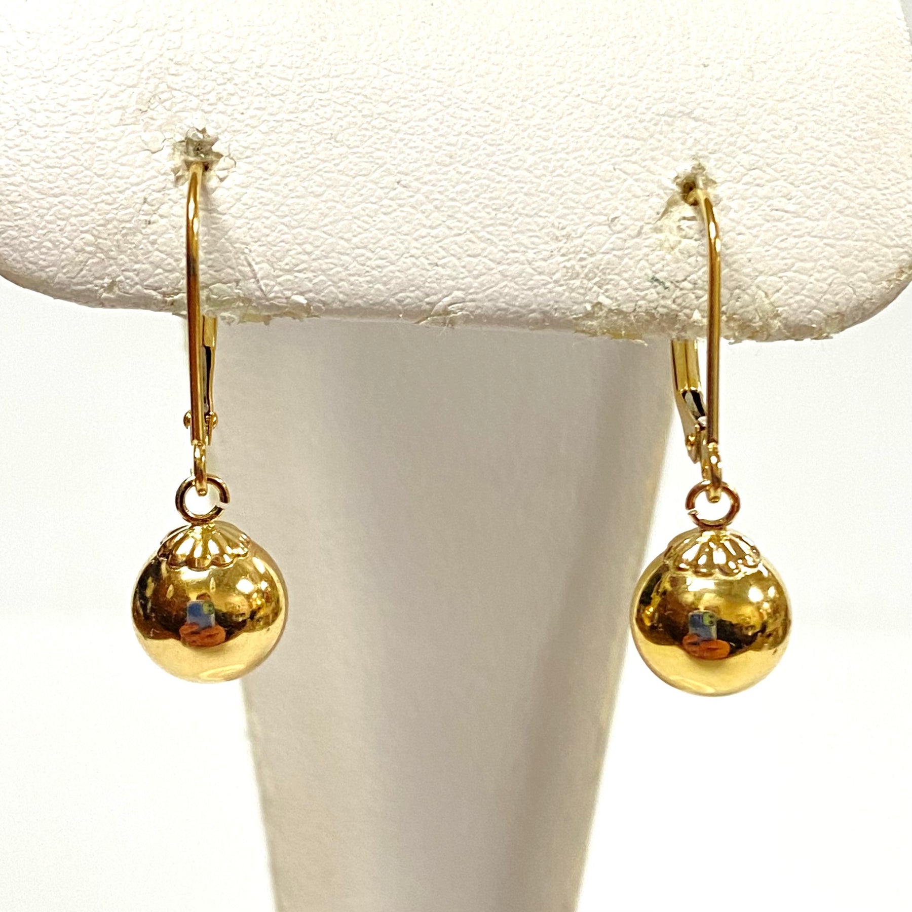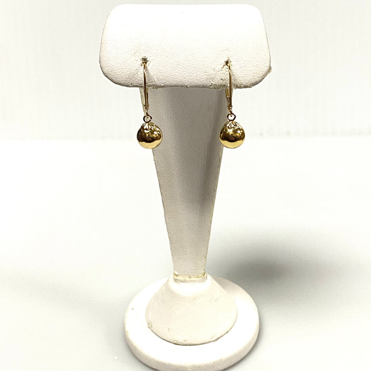 u914 Vintage Classic 14K Yellow Gold 8mm Ball Dangling Earrings