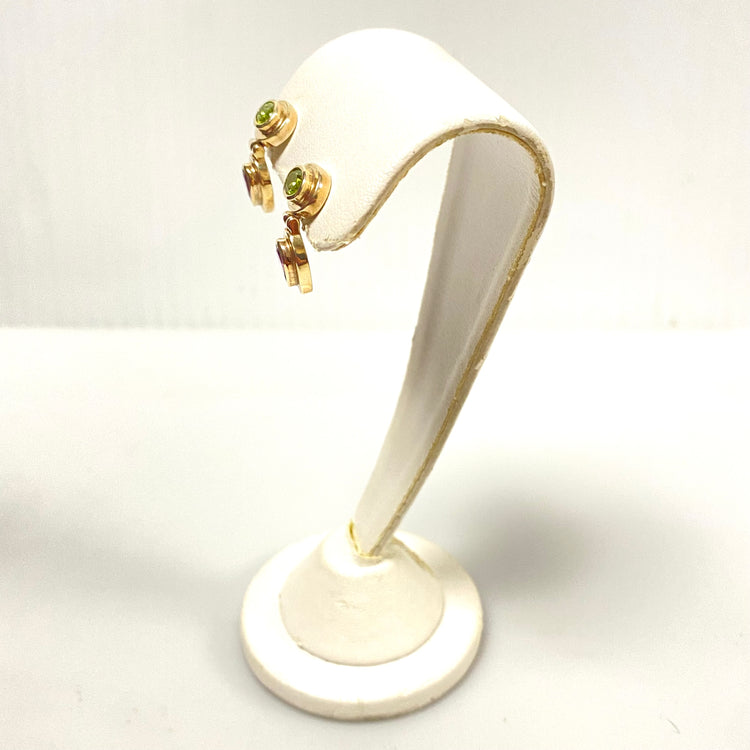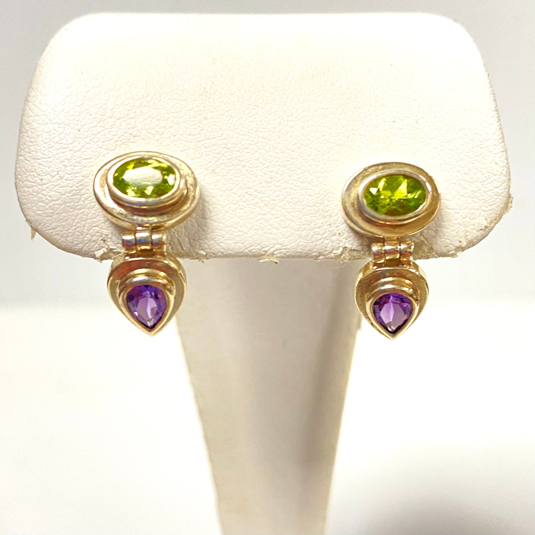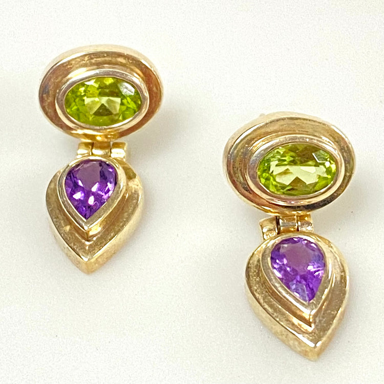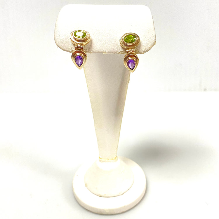 u934 Vintage Classic Sterling Silver 925 Dangle Earrings Green Purple Stones