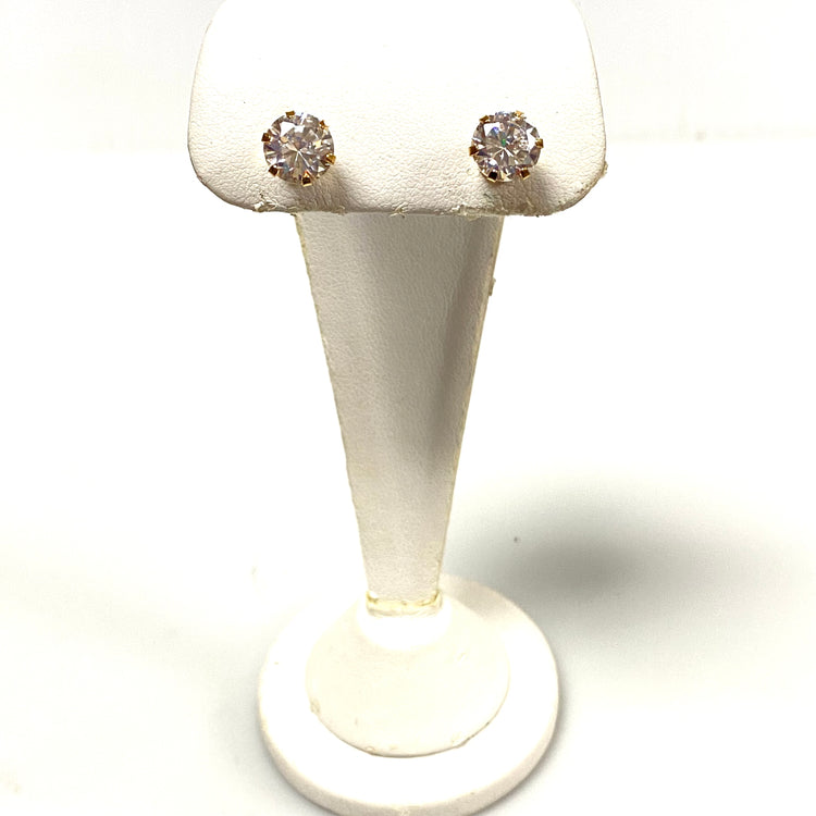 u948 Vintage 14k Yellow Gold 8mm Round Cubic Zirconia Stud Earrings