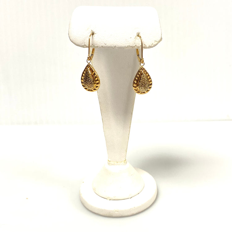 u989 Vintage Classic 14K Yellow Gold Teardrop Dangle Hanging Earrings