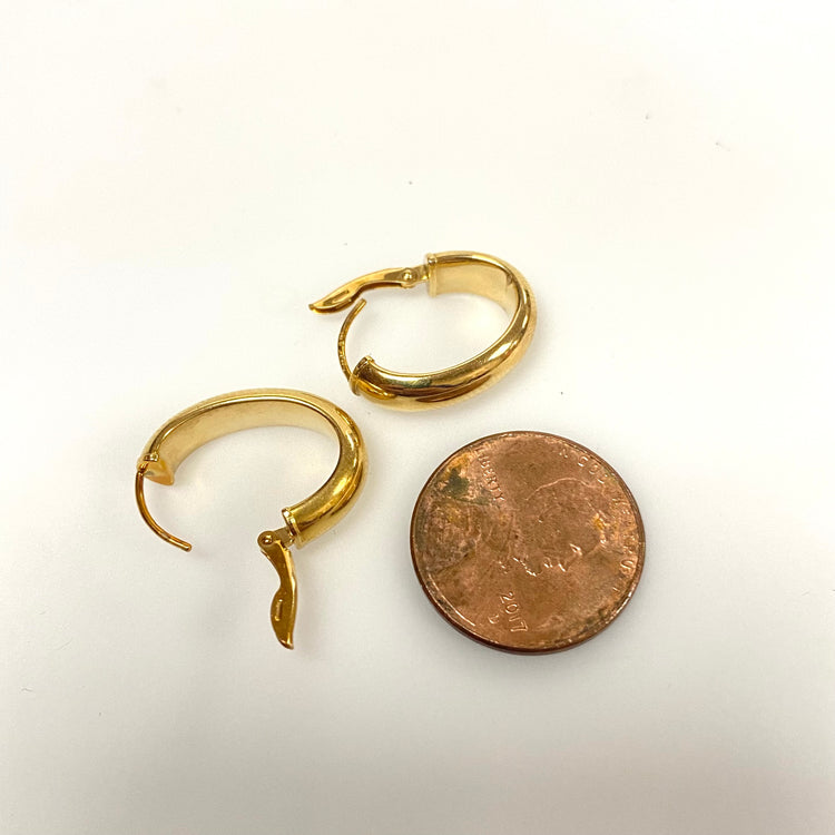 u997 Vintage Classic 14K Yellow Gold Hanging Oval Hoop Earrings