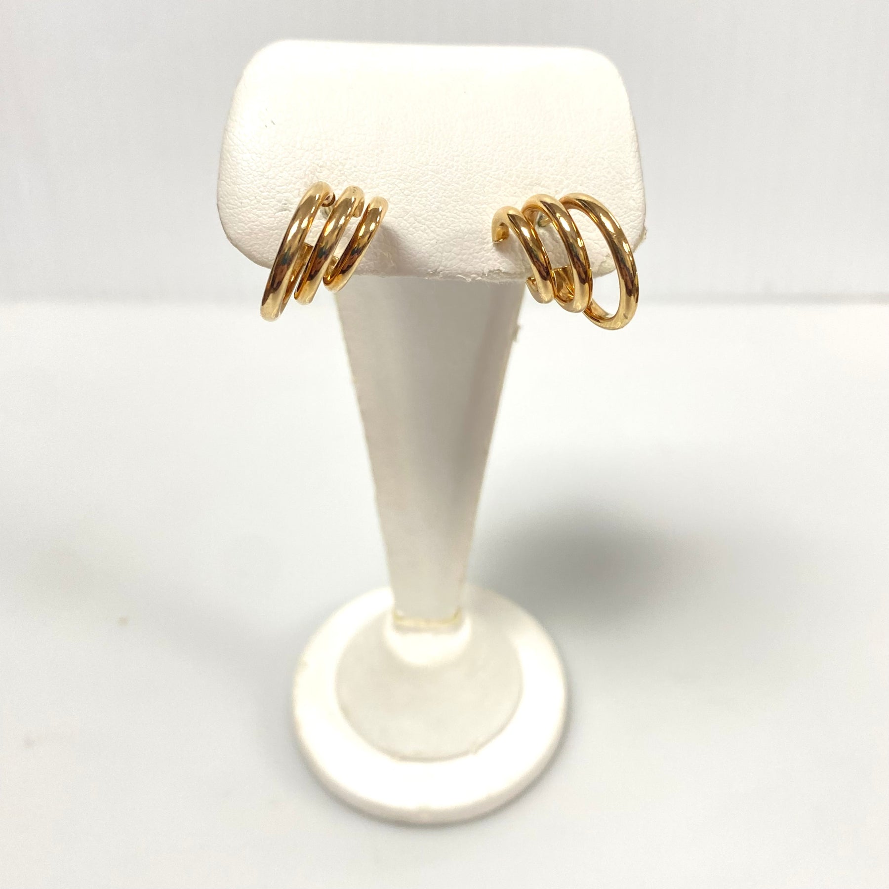 v001 Vintage Classic 14K Yellow Gold Fancy 3 Tier Hoop Earrings