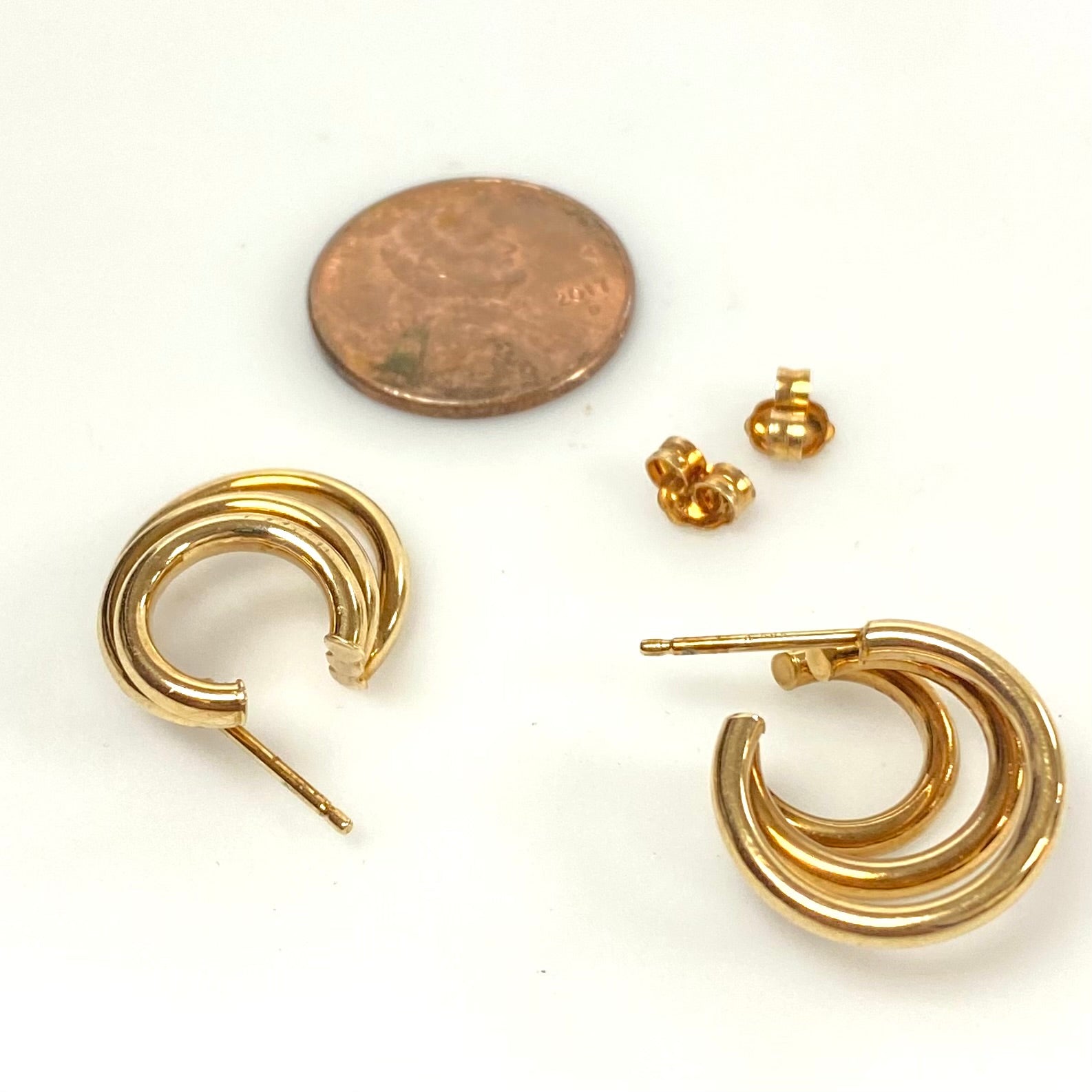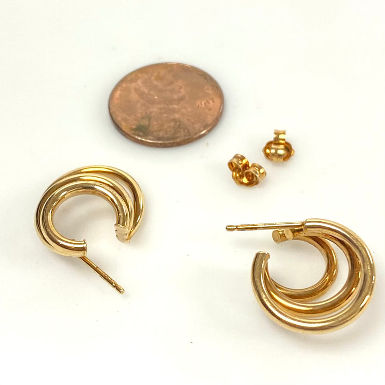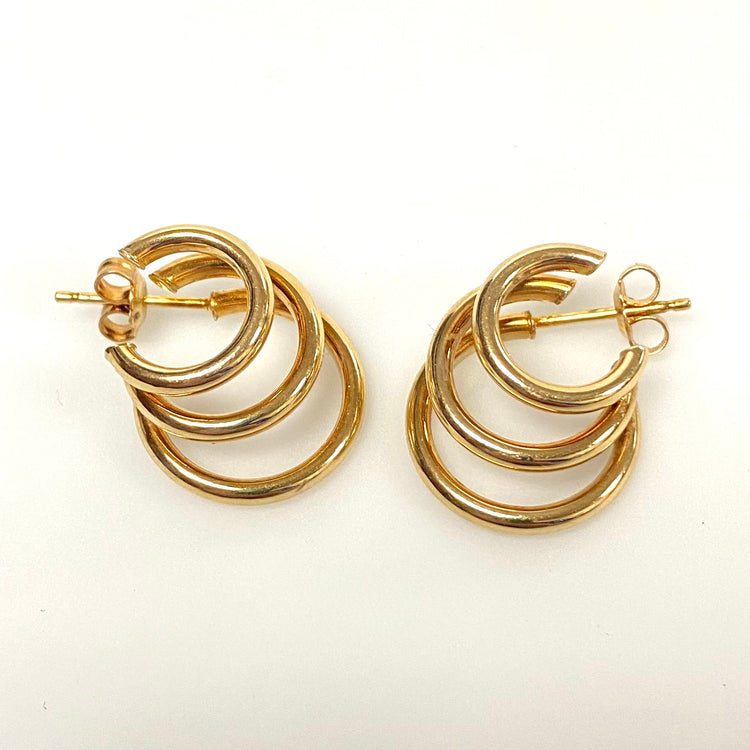 * Vintage 14K Yellow Gold, 3 tier Hoop Earrings.