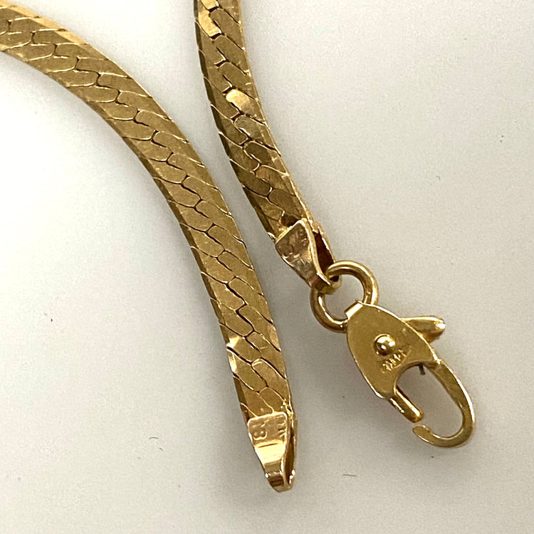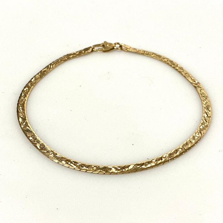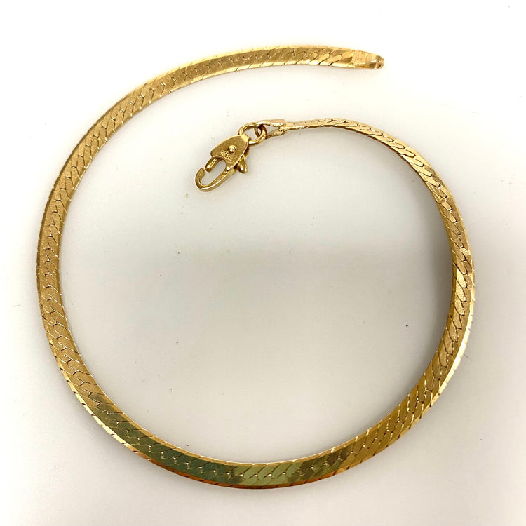 Vintage 14K Yellow Gold bracelet.  Herringbone style chain. 8.25" long; 3mm wide, 1mm thick.