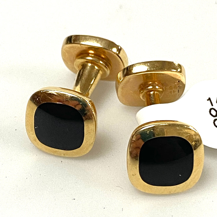 v036 Vintage 14k Yellow Gold Black Onyx Cufflinks