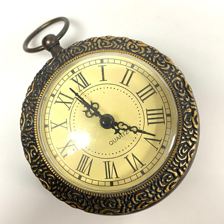 v070 Vintage Quartz Miniature 3 5/8" Hanging Wall Clock Bronze Shade