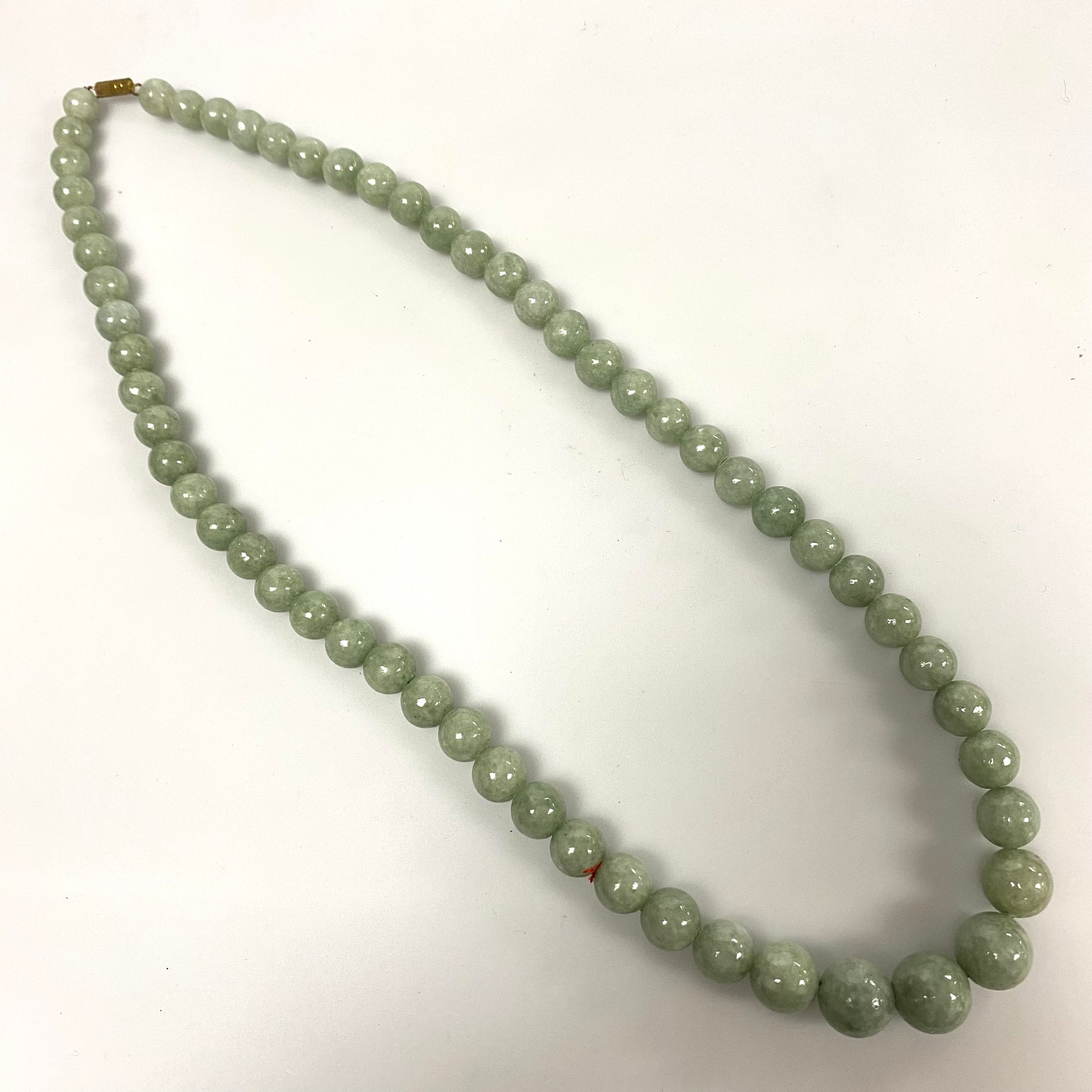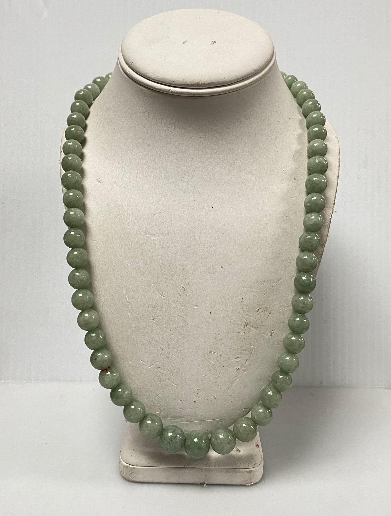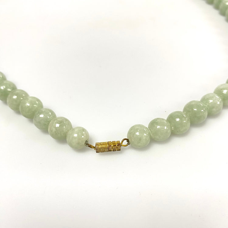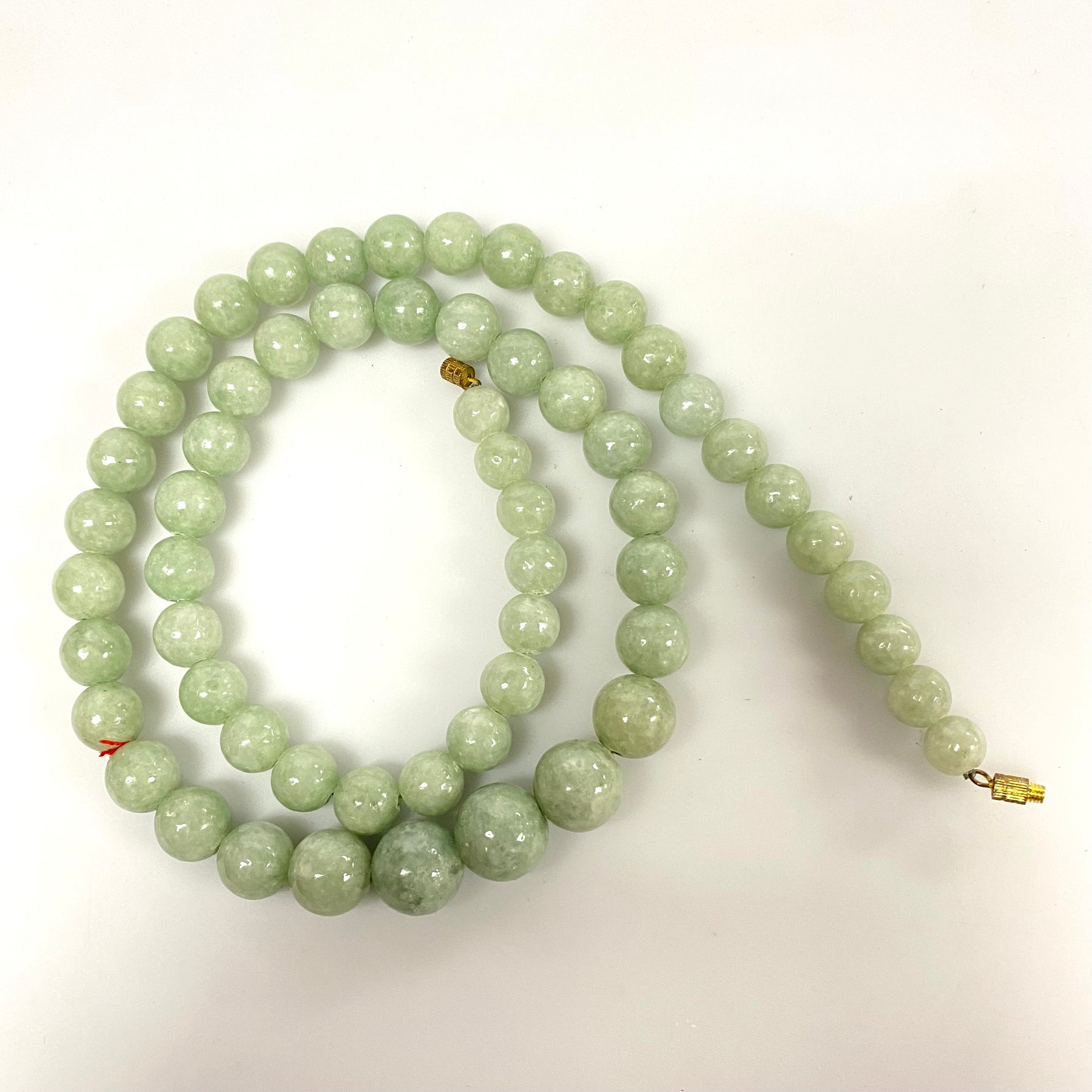 * Vintage Natural Jade Beads Necklace. Light Green shade. 1 strings; 35" long.