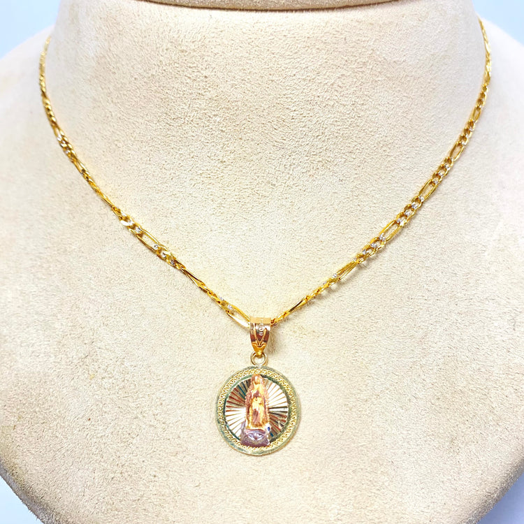 v090 Vintage 10K Yellow Gold Link Chain Necklace 16" Long Mary Religious Pendant