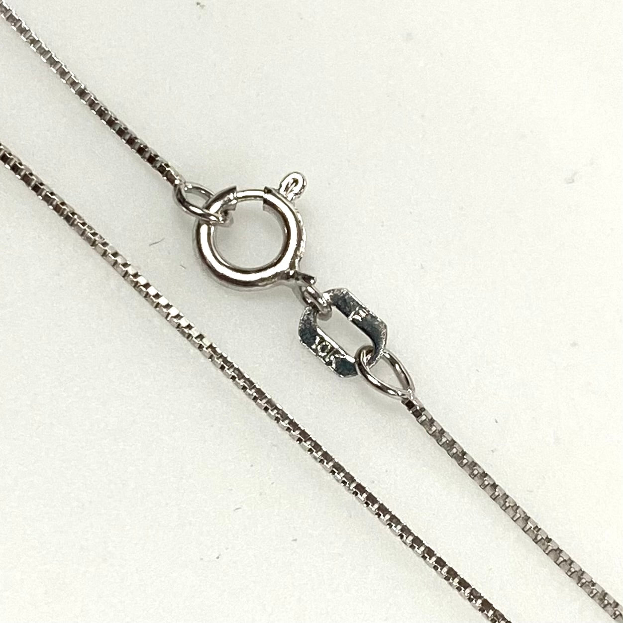 * 10K White Gold Chain Necklace. Stamped 10k Fx. 18" long. 0.5mm wide.