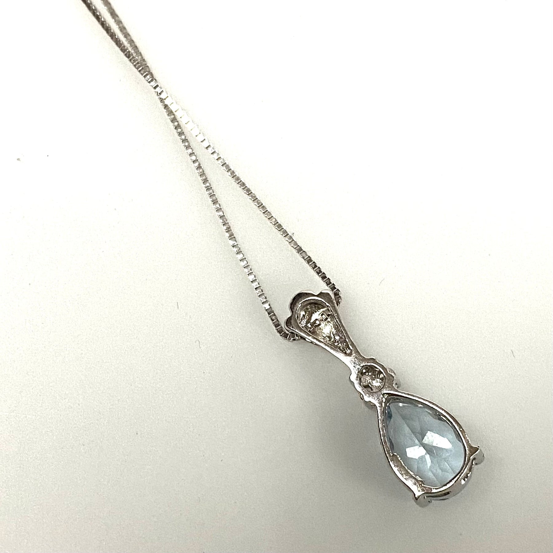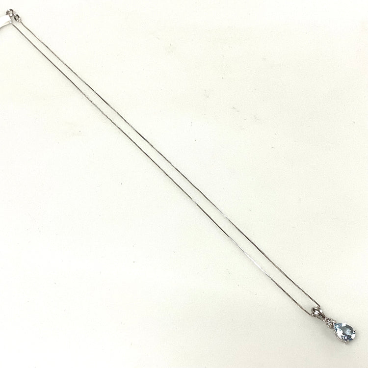 v128 Vintage 10K White Gold Chain Necklace 18" Long Aquamarine Diamond Pendant